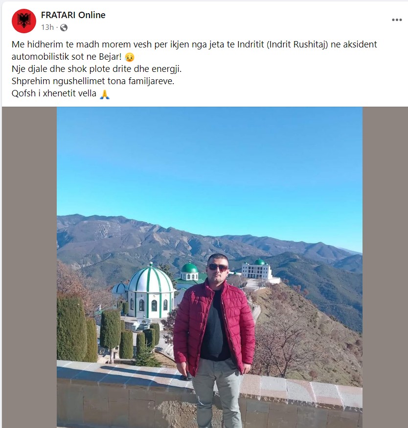 Personi që shihni në foto është 37-vjeçari Indrit Rushitaj i cili humbi jetën pasditen e djeshme në një aksident në aksin rrugor Levan-Tepelenë. Mësohet se shtetasi Indrit Rushitaj duke drejtuar automjetin tip “Benz” është përplasur me automjetin tip “Bmw” me drejtues shtetasin Fatjon Lalaj. Nga ky aksident i rëndë, Rushitaj humbi jetën në vendngjarje ndërsa Lalaj mbeti i plagosur rëndë por fatmirësisht jashtë rrezikut për jetën.