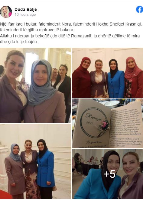 “Një iftar kaq i bukur, faleminderit Nora, faleminderit Hoxha Shefqet Krasniqi, faleminderit të gjitha motrave të bukura”, ka shkruar Balje në Facebook.