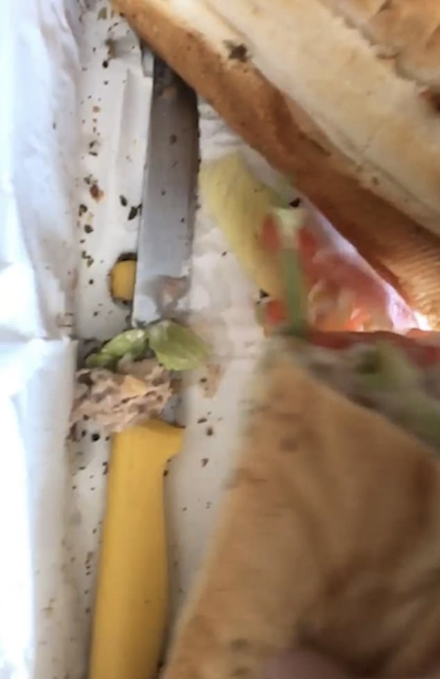 21-vjeçarja, nga Lowestoft kur porositi sanduiçin zbuloi se brenda ishte një thikë e verdhë, e dhëmbëzuar e futur brenda mbështjelljes. Moyes, e cila ishte me partnerin e saj Harley Gildroy tha: