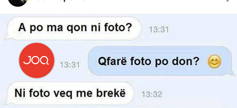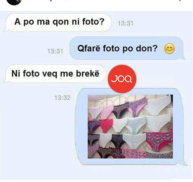 Megjithatë, meshkujt janë përherë ata që tentojnë. E tillë është edhe biseda mes një çifti shqiptar, ku djali i kërkon të dashurës që t’i nisë një foto vetëm me mbathje.