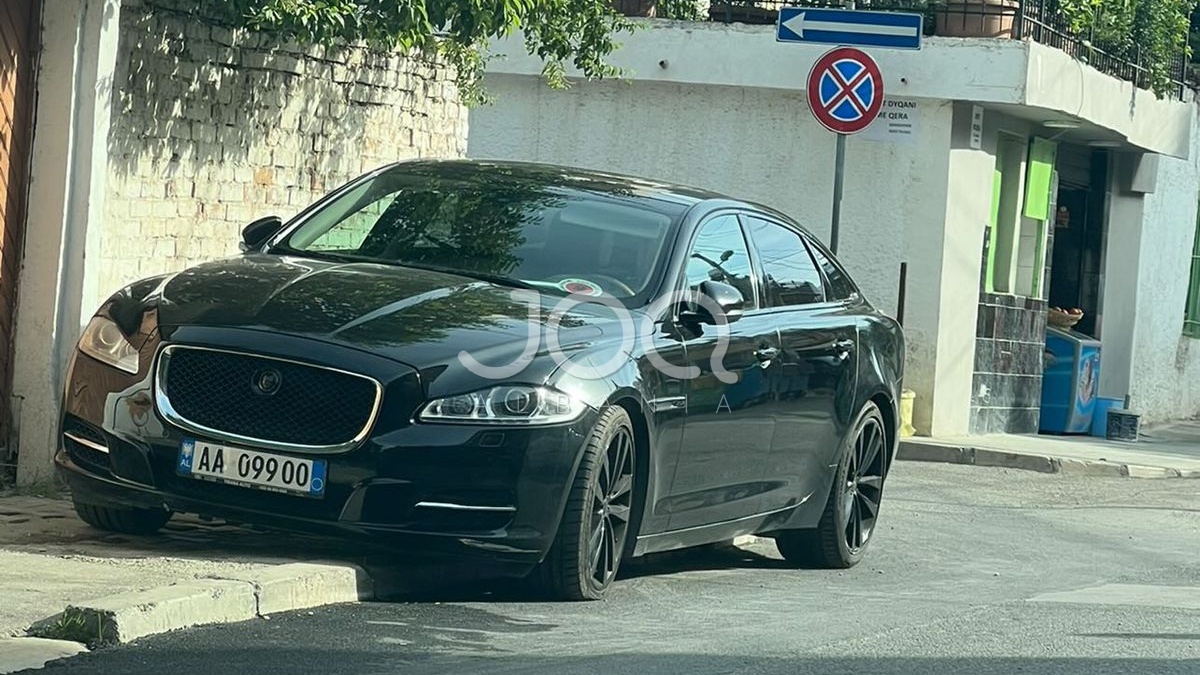 Gurten Papuli, djali i babit Agron, milionerit me taksat e shqiptarëve, në mjetin e tij luksoz “Jaguar” mban një tabelë policie, që të mos gjobitet nga efektivët e rrugores.