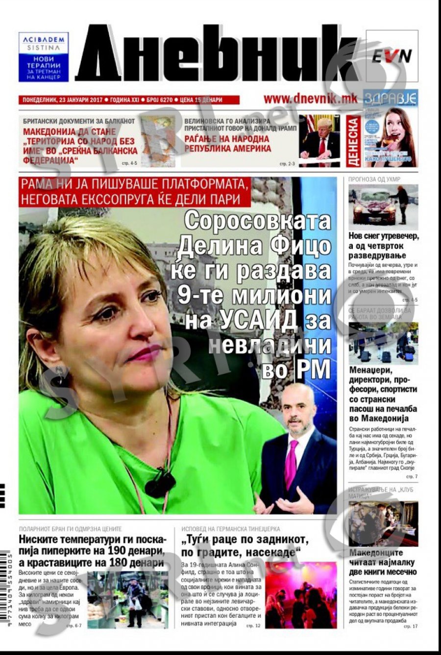 Faqja kryesore e kësaj gazete ditën e nesërme, jep lajmin se Delina do të marrë 9 milionë dollarë nga USAID.