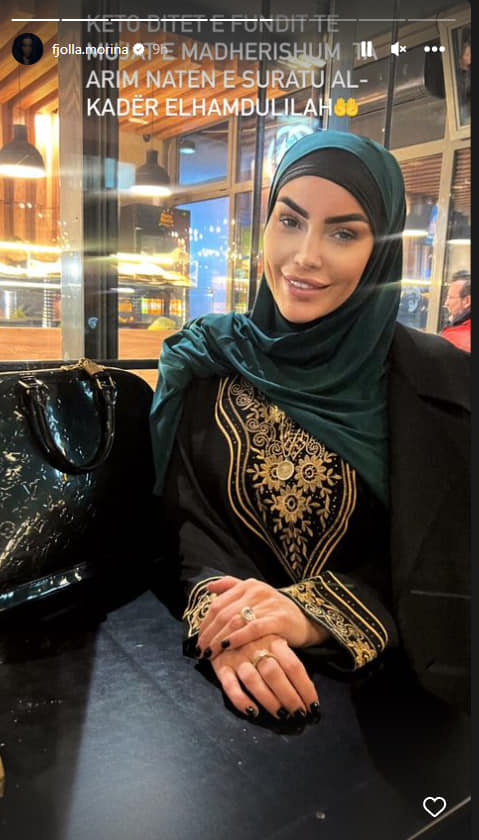 “Këto ditët e fundit të muajit të madhërishëm ta arrijmë natën e Suratu Al-Kadër Elhamdulilah”, ka shkruar ajo.