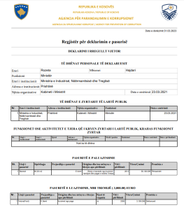 Megjithatë, këtë vit ministrja Hajdari e ka deklaruar pasurin e saj.