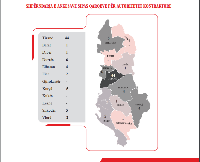 Në të dhënat e buletinit shihet se kryeson qarku i Tiranës me 44 ankesa, pasur nga Durrësi me 6 ankesa.