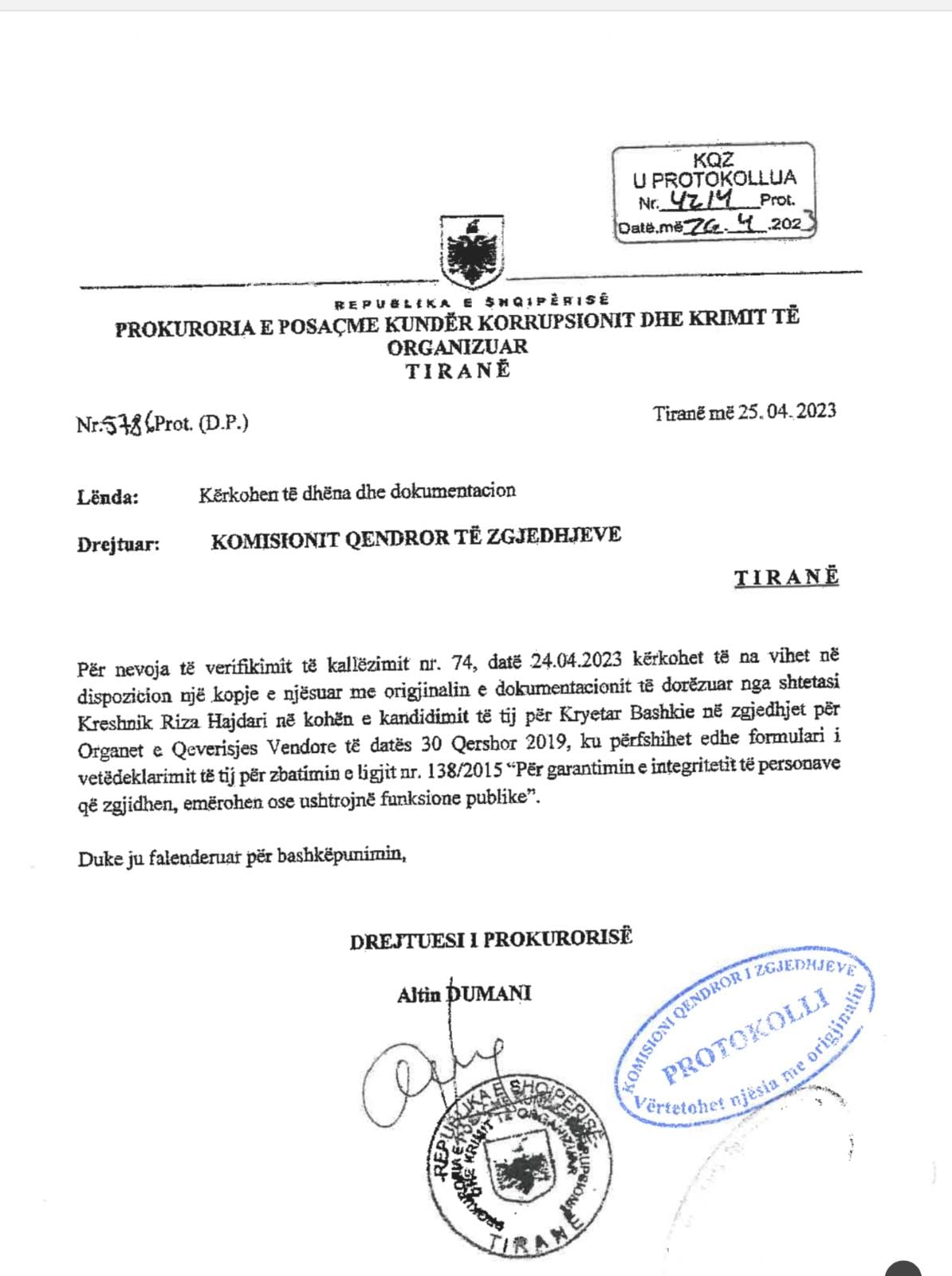 KQZ e ka anashkaluar këtë fakt duke pranuar që Hajdari të rikandidojë për kryetar e madje e ka njohur atë në mandatine dytë. Ndërkohë emri i Hajdarit është dërguar në SPAK edhe për manipulim dhe blerje votash në bashkëpunim me biznesmenin Pëllumb Salillari për zgjedhje e 14 majit.