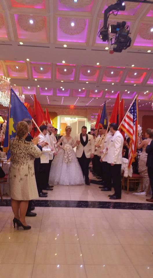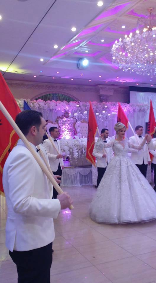 Në këtë dasmë nuk kanë munguar as elementët patriotja shqiptarë, si flamuri kuq e zi apo edhe ai i Kosovës. Rustem Gecaj është anëtar i Këshillit Kombëtar të Vatrës dhe biznesmen i njohur.