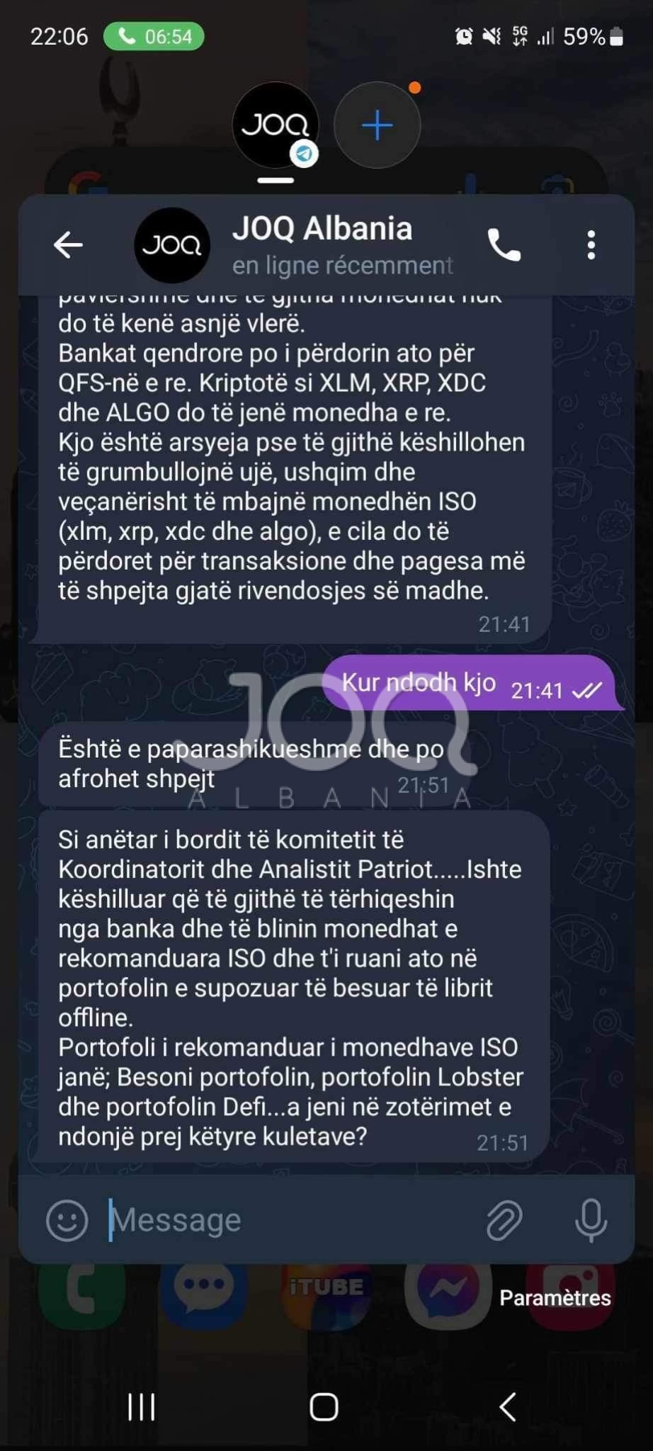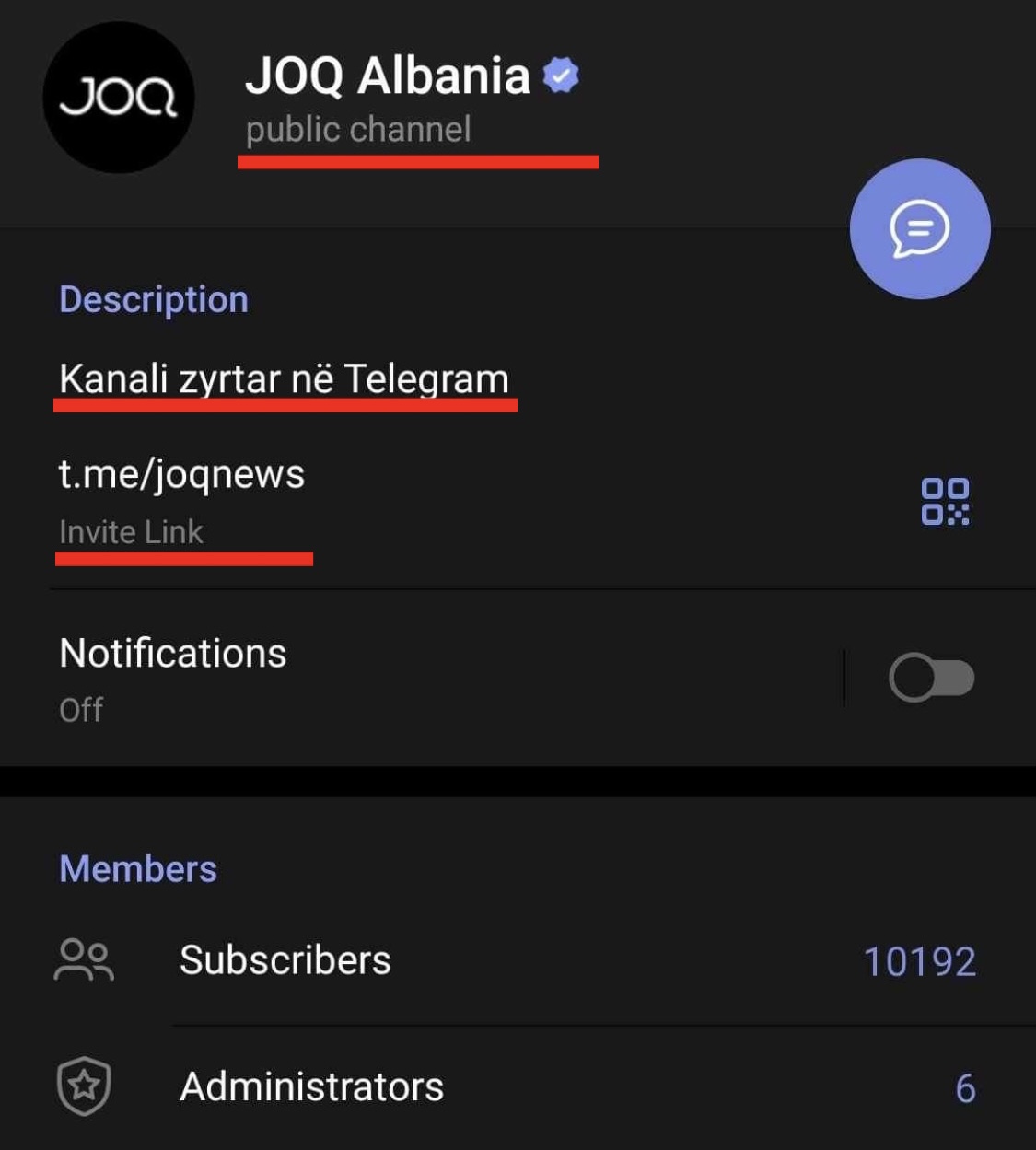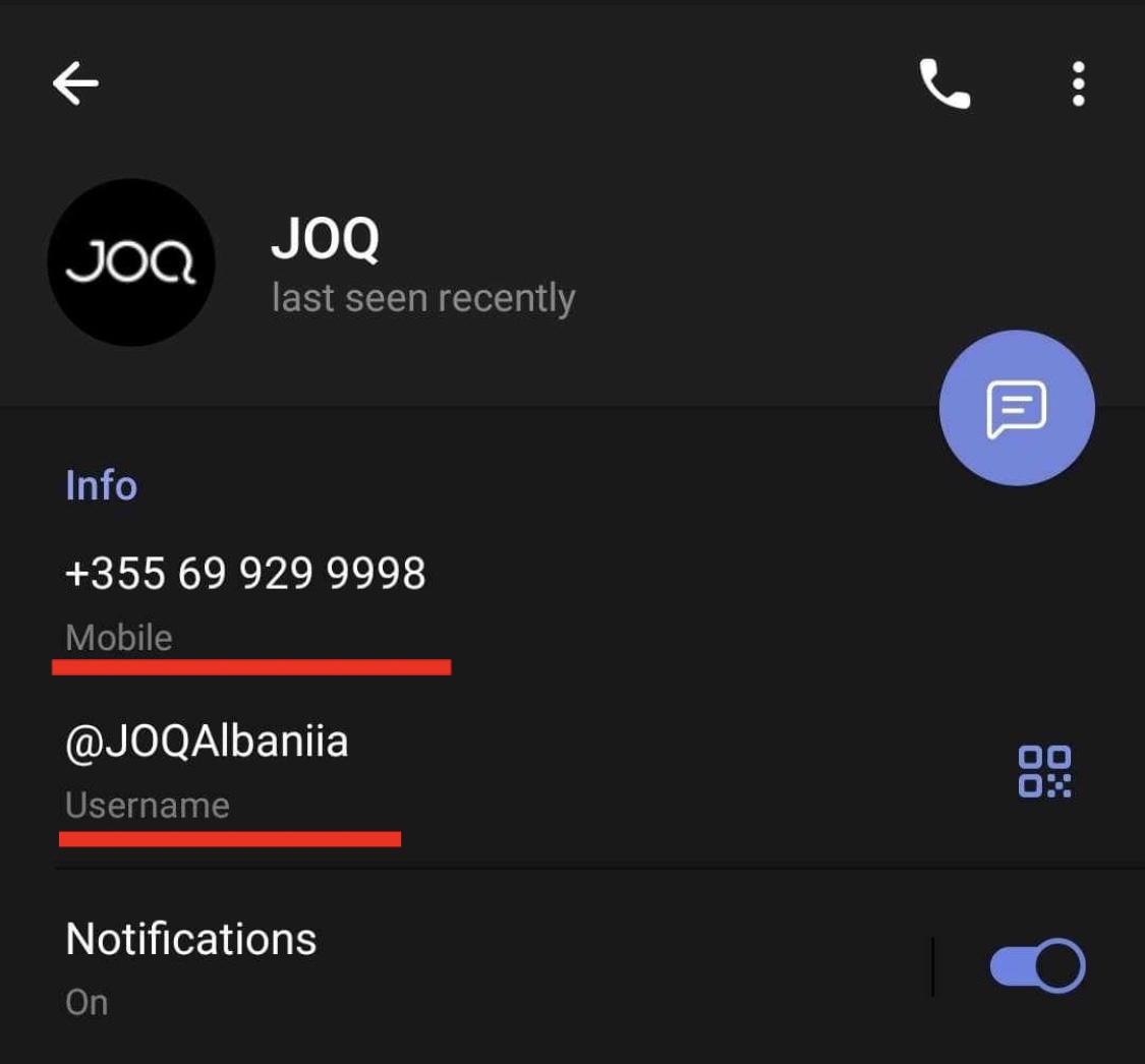 Llogaria e vetme zyrtare e JOQ ALBANIA në Telegram është me këtë numër celulari: +355 69 929 9998 dhe me këtë emër JOQ Albaniia.