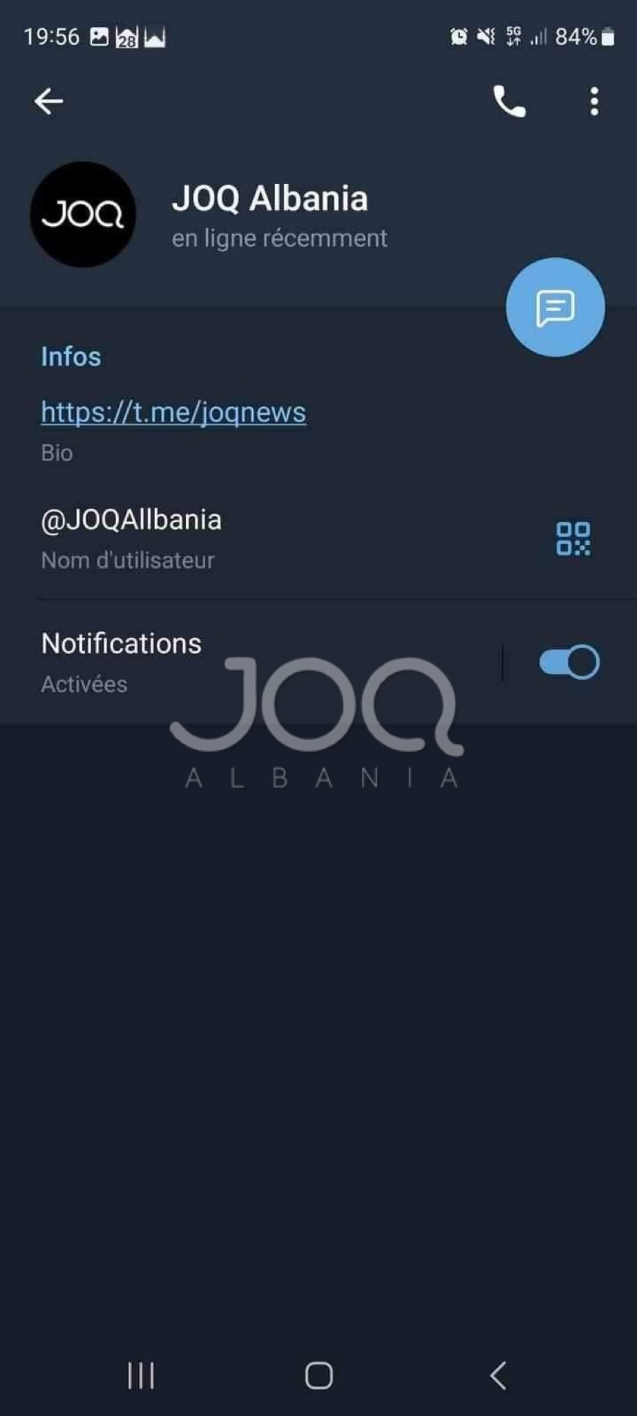 Telegram, është një ndër rrjetet sociale që JOQ ALBANIA përdor prej kohësh për t’u lidhur me shqiptarët dhe informuar ata për të rejat më të fundit nga e gjithë bota.