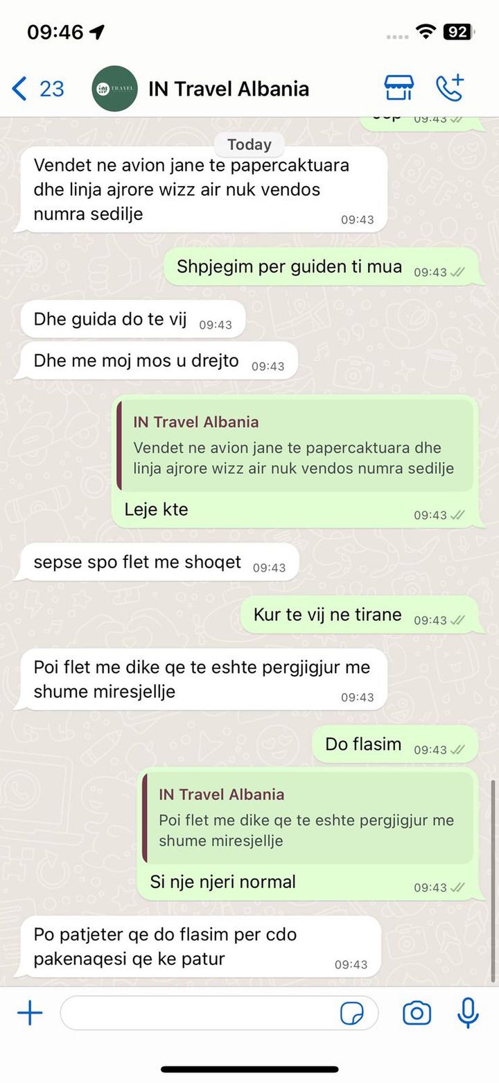 Por gjatë udhëtimit, udhëtarët janë përballur me një problem. Denoncuesja shkruan se lekët iu kanë ikur kot, pasi ka qenë skandal edhe hoteli edhe cicëroni. Qytetarja shkruan se kur i është drejtuar agjencisë me një mesazh për këtë pakënaqësi, ka marrë një përgjigje që lë për të dëshiruar.