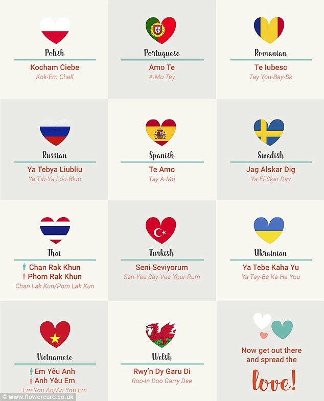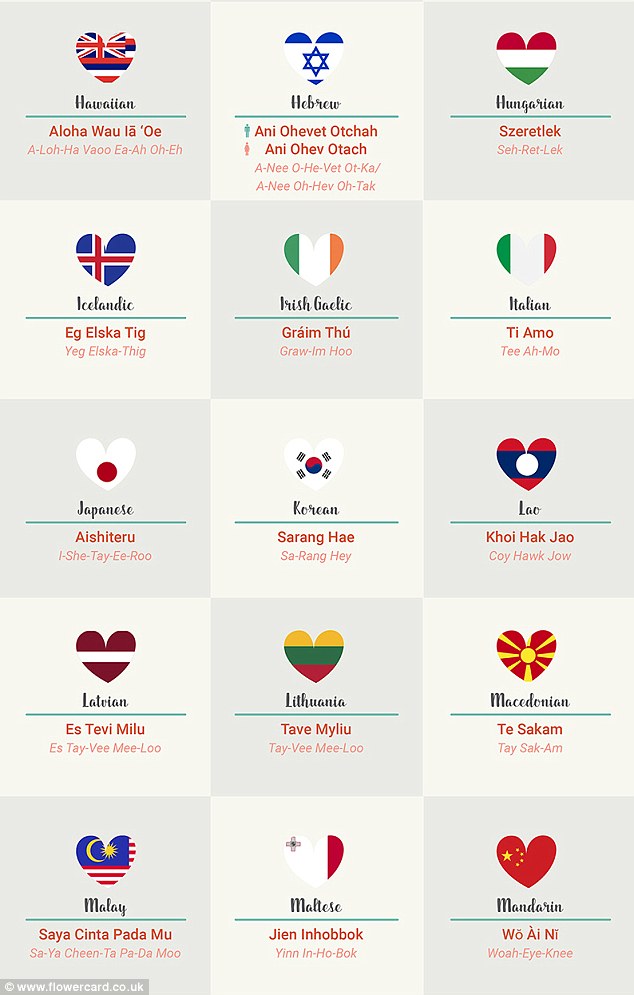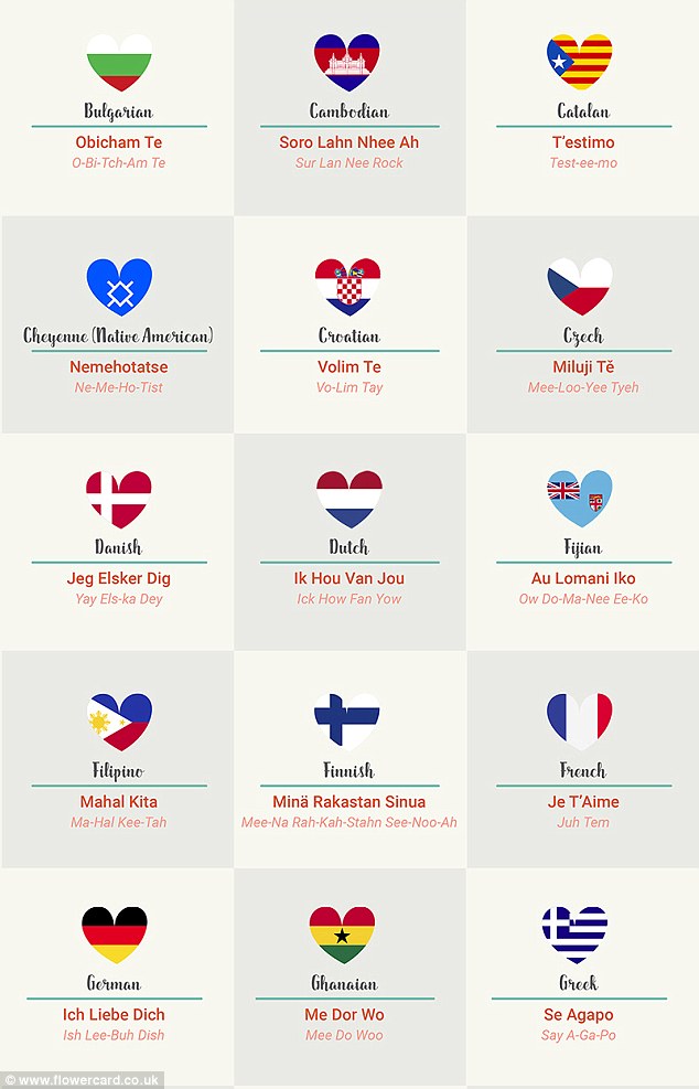 Pra, nëse ju doni të thoni dy fjalë magjike për dikë në një vend të huaj në 14 shkurt, apo ndonjë ditë tjetër, ja ku i keni. Nëse disa do i gjeni të vështira për t'i shqiptuar, mos e vrisni mendjen, nuk jeni vetëm ju.