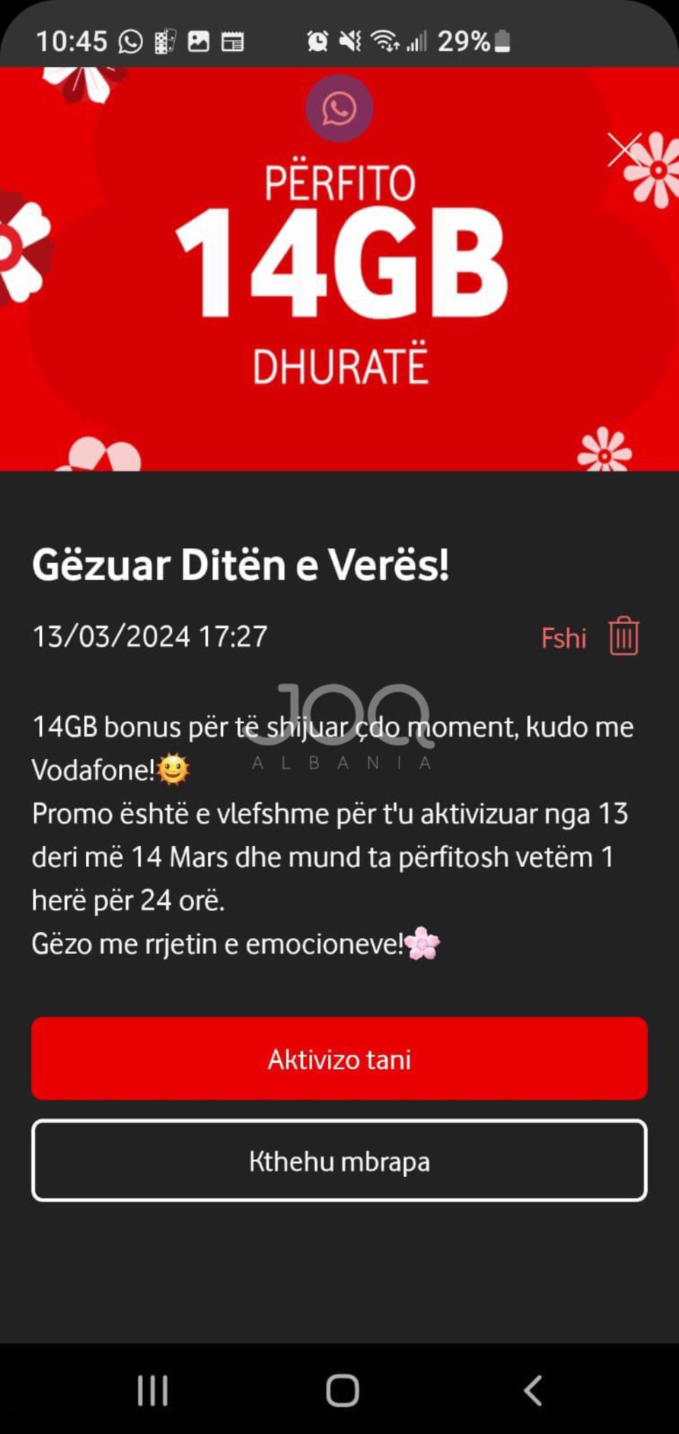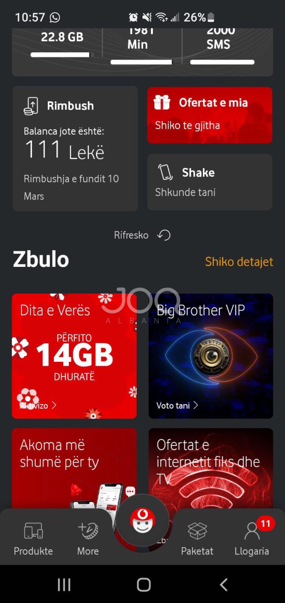 Pershendetje JOQ!Po ju shkruaj per tju treguar dhe njeher mashtrimet e kompanise Vodafone qe dhe kur ben dhurata te mer leke pa te pyetur.Ne aplikacionin My vodafone kishin ardhur giga bonus dhurat per Diten e Veres dhe pas aktivimit te saj me vin mesazh ne telefon qe llogarise sime bankare (e kisha te lidhur me banken)iu larguan 25 mije leke te vjetra pa asnje mesazh konfirmimi.I ka ndodhur ndokujt kjo gje Ne vazhdim po ju nis r fotot