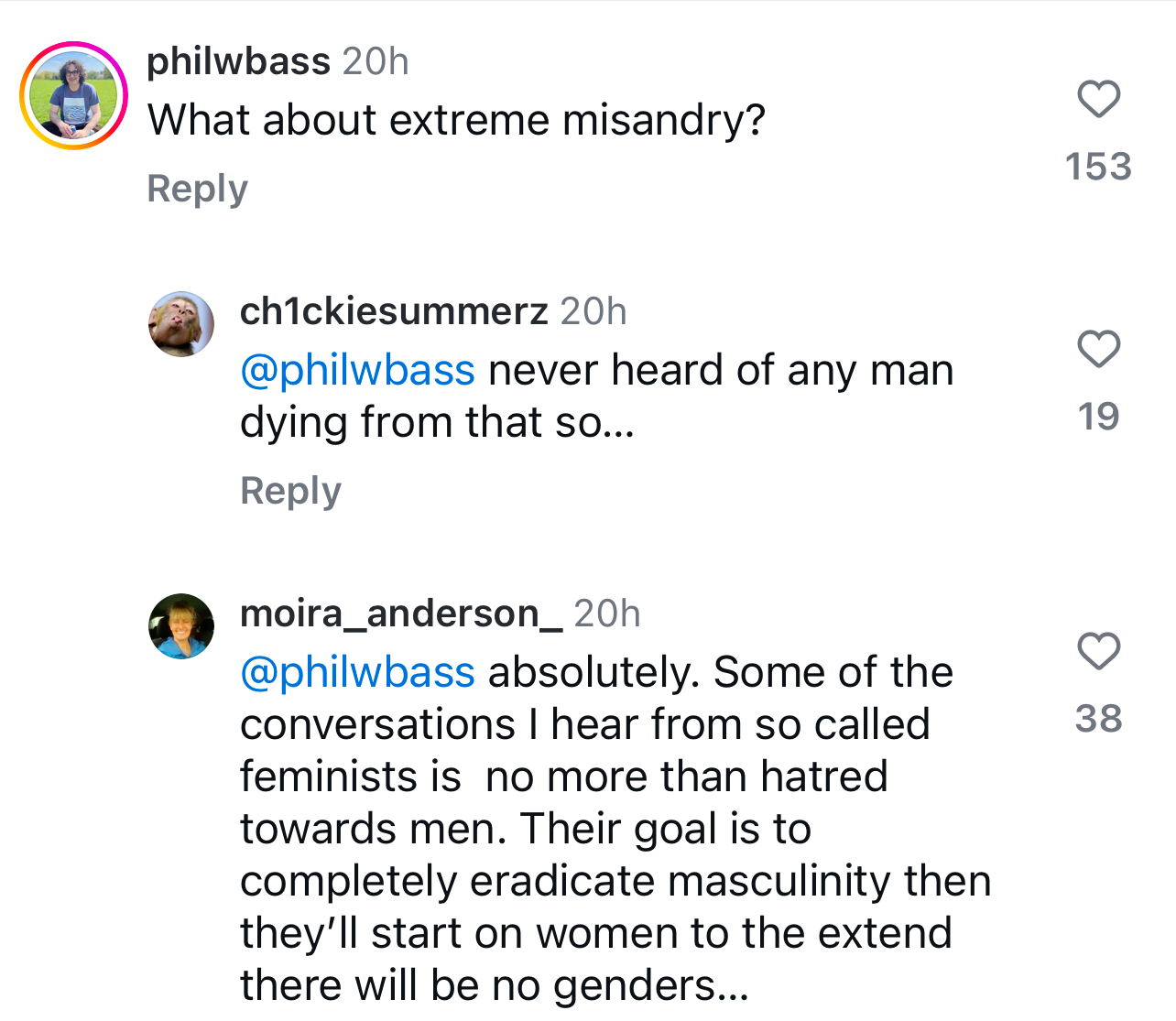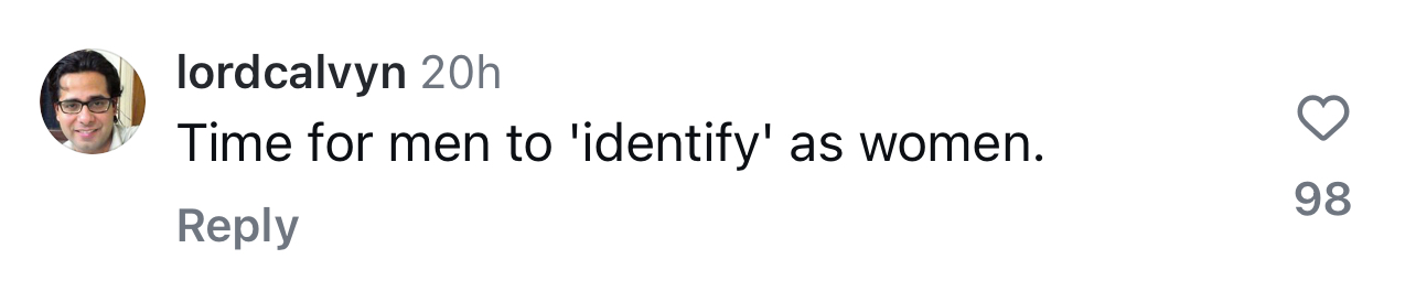 “Koha që meshkujt të identifikohen si femra”,-thotë një tjetër person.