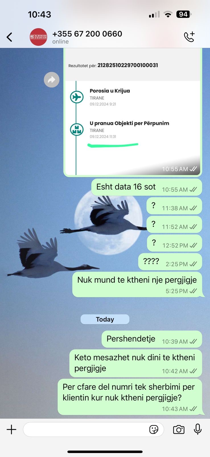 Qytetarët gjithnjë e më shpesh kanë shprehur shqetësime për vonesat në shërbimin e Albanian Courier, duke kërkuar që kompania të përmirësojë procesin e shpërndarjes dhe komunikimin me klientët.