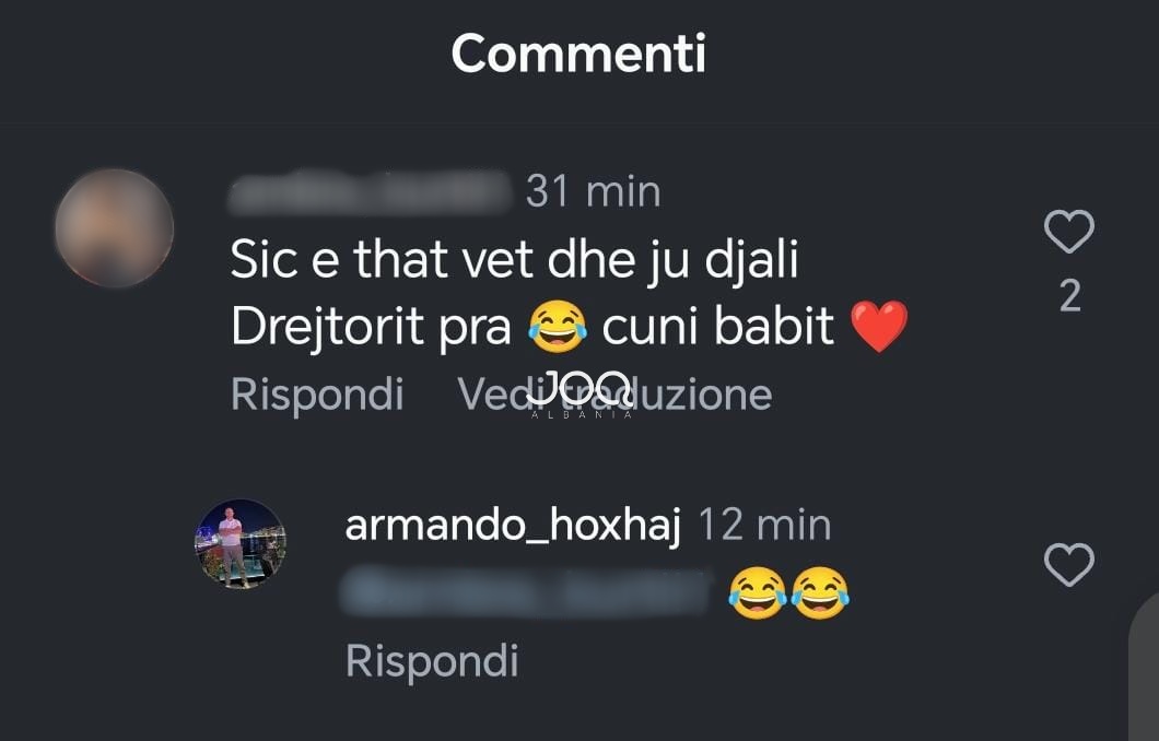 Ky koment duket se ka “ngjallur” epshet e inspektor Armandos, i cili pasi lejoi ndërtimin e objektit duke mbyllur sytë, ka filluar ta ngacmojë vajzën duke i bërë replay dy emogy duke qeshur.