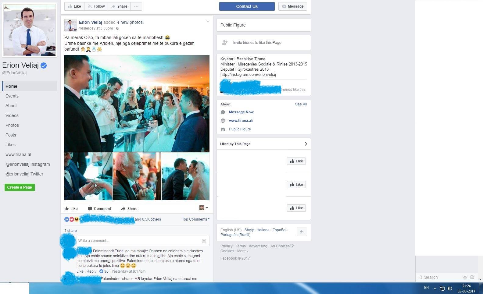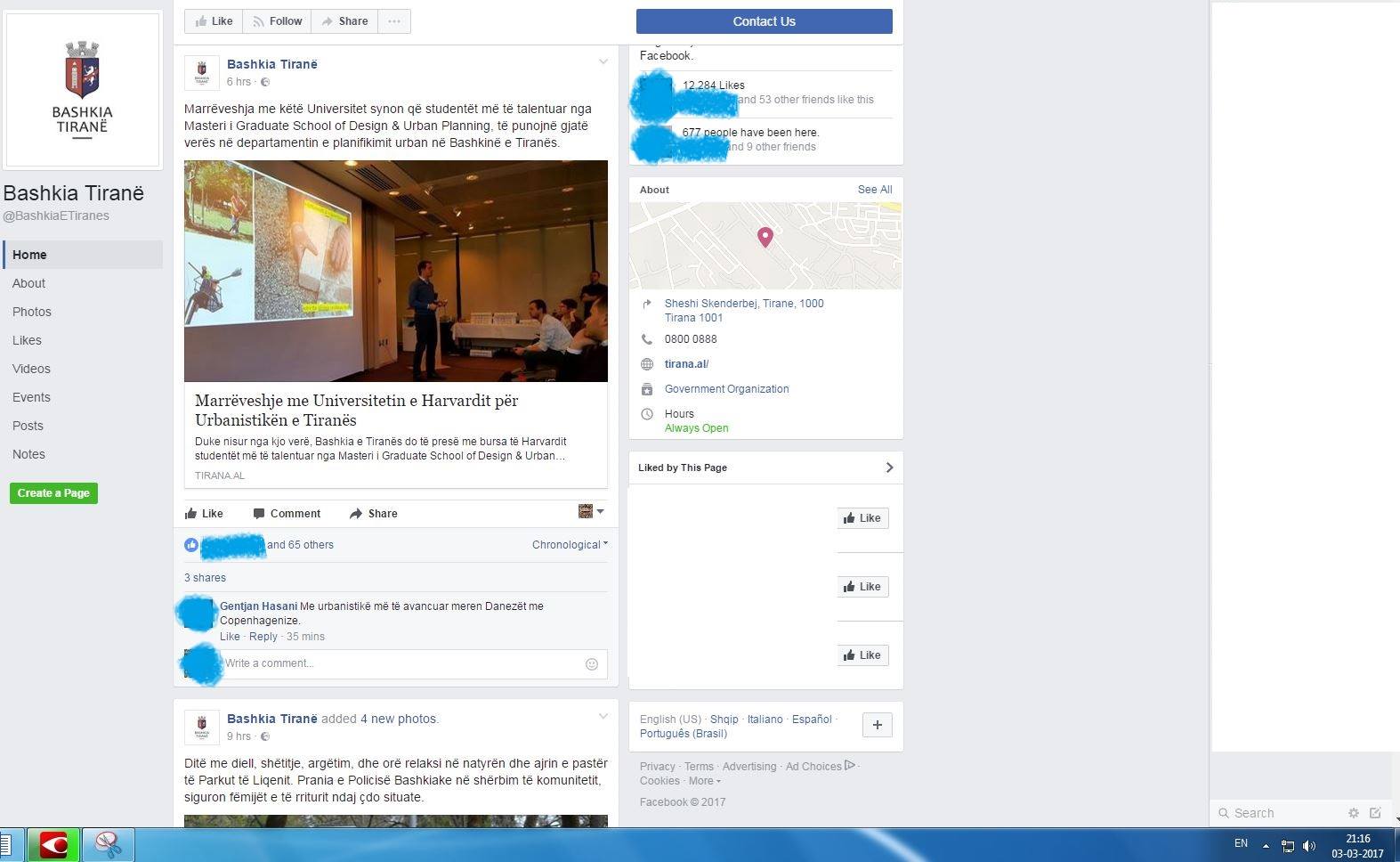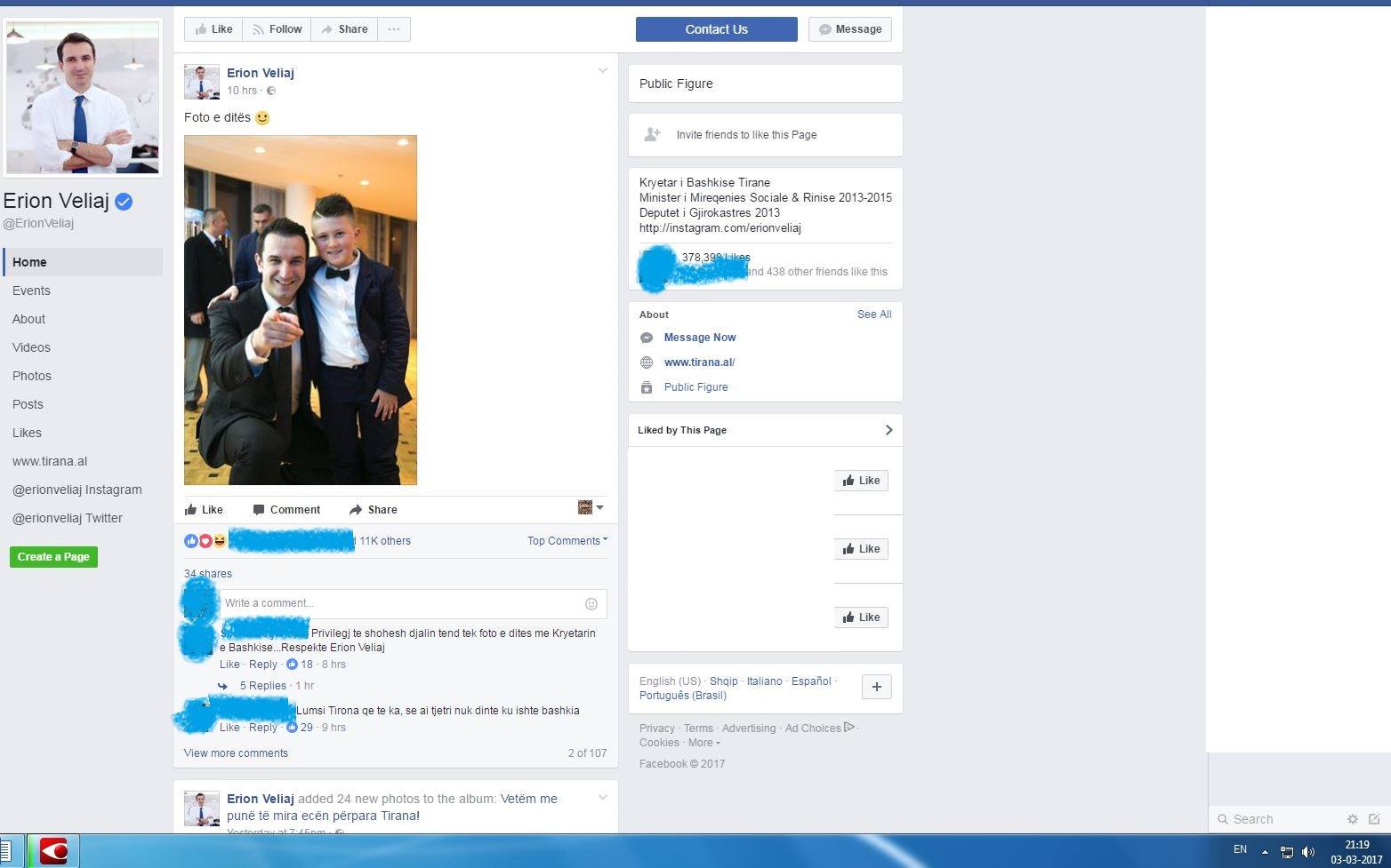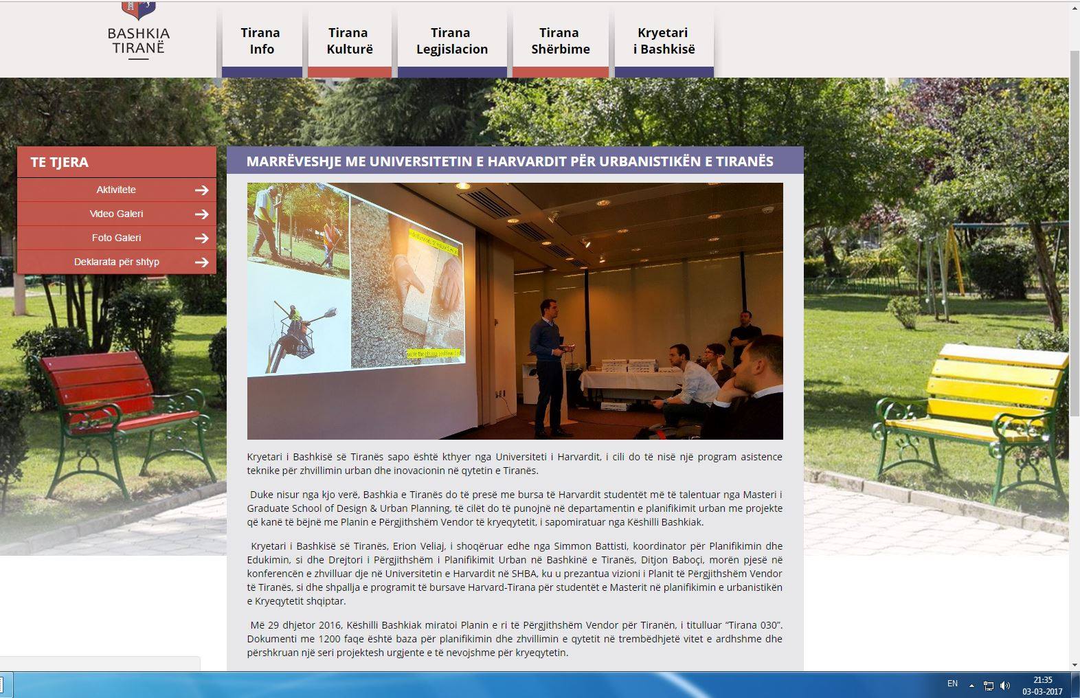 Duke parë lajme të ditës së djeshme, një moment u mahnita edhe më shumë me Veliajn, madje mu duk sikur kisha haluçinacione. Lexova një lajm që personi në fjalë kishte lidhur një marrëveshje me studentë të arkitekturës të Universitetit të Harvardit, të cilët do vijnë në Tiranë e do na japin kontribut të vyer për të vënë në jetë projektin aq shumë të debatuar dhe të miratuar pa pikë transparence, “Tirana030”. U habita një moment, se nga postimet në facebook kisha parë që dy ditët e kaluara (2-3 mars), kryetari i Bashkisë kishte qenë gjatë gjithë ditës në krye të punëve dhe nuk po kuptoja se kur arriti të shkonte në SHBA. Por kur pashë lajmin që dje pasdite sapo ishte kthyer nga SHBA-ja, aty u pataksa fare. Nga postimet në facebook të faqeve “Bashkia Tiranë” dhe “Erion Veliaj”, kronologjia e ngjarjeve për datat 2-3 mars është si më poshtë: