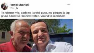 “Të nderuar miq, bash me i ardhë puna, ma përpara ia jap grunë Albinit se Hashimit votën. Vikend të këndshëm“, ka shkruar Shartari në profilin e tij.