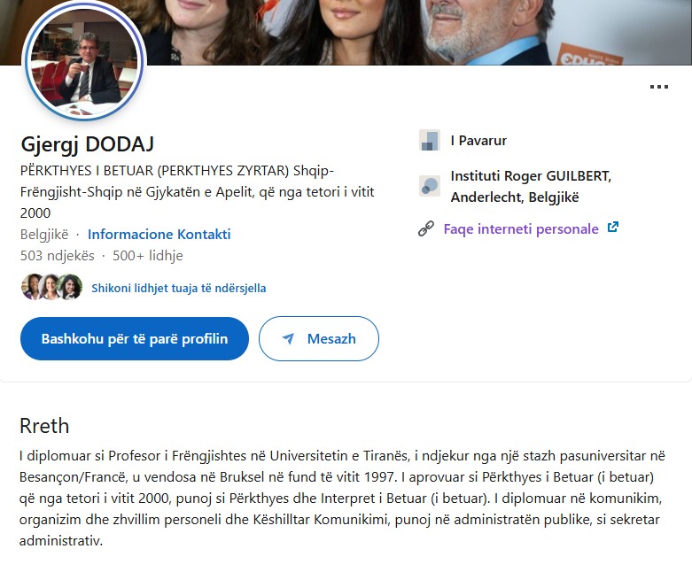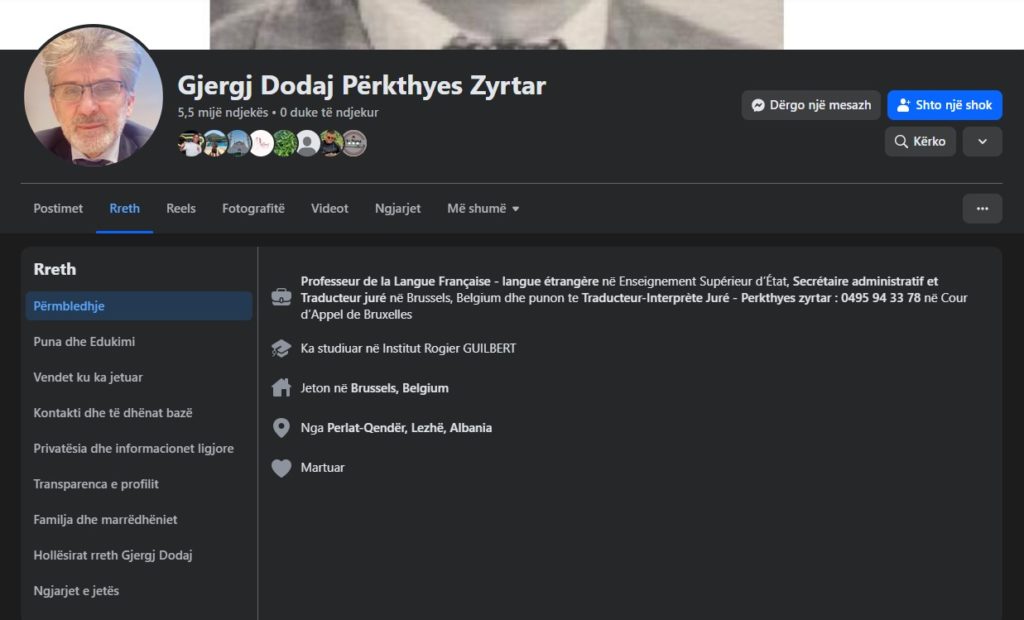 Ky i moshuar maniak dhe qejfli është Gjergj Dodaj, nga Mirdita. I martuar dhe baba, me banim në Belgjikë është me profesion, profesor i Frëngjishtes, përkthyes i betuar dhe interpret po ashtu i betuar në Bruksel, ku jeton që nga viti 1997. Dikur e diplomuar nga Universiteti i Tiranës dhe stazhist në Francë, sot njihet për veprimet e tij të turpshme që lënë për të dëshiruar që nuk i ka hije aspak as një mirditori. Është e trishtë të shohësh se si një njeri me arsim të lartë turpëron veten, profesionin, familjen.