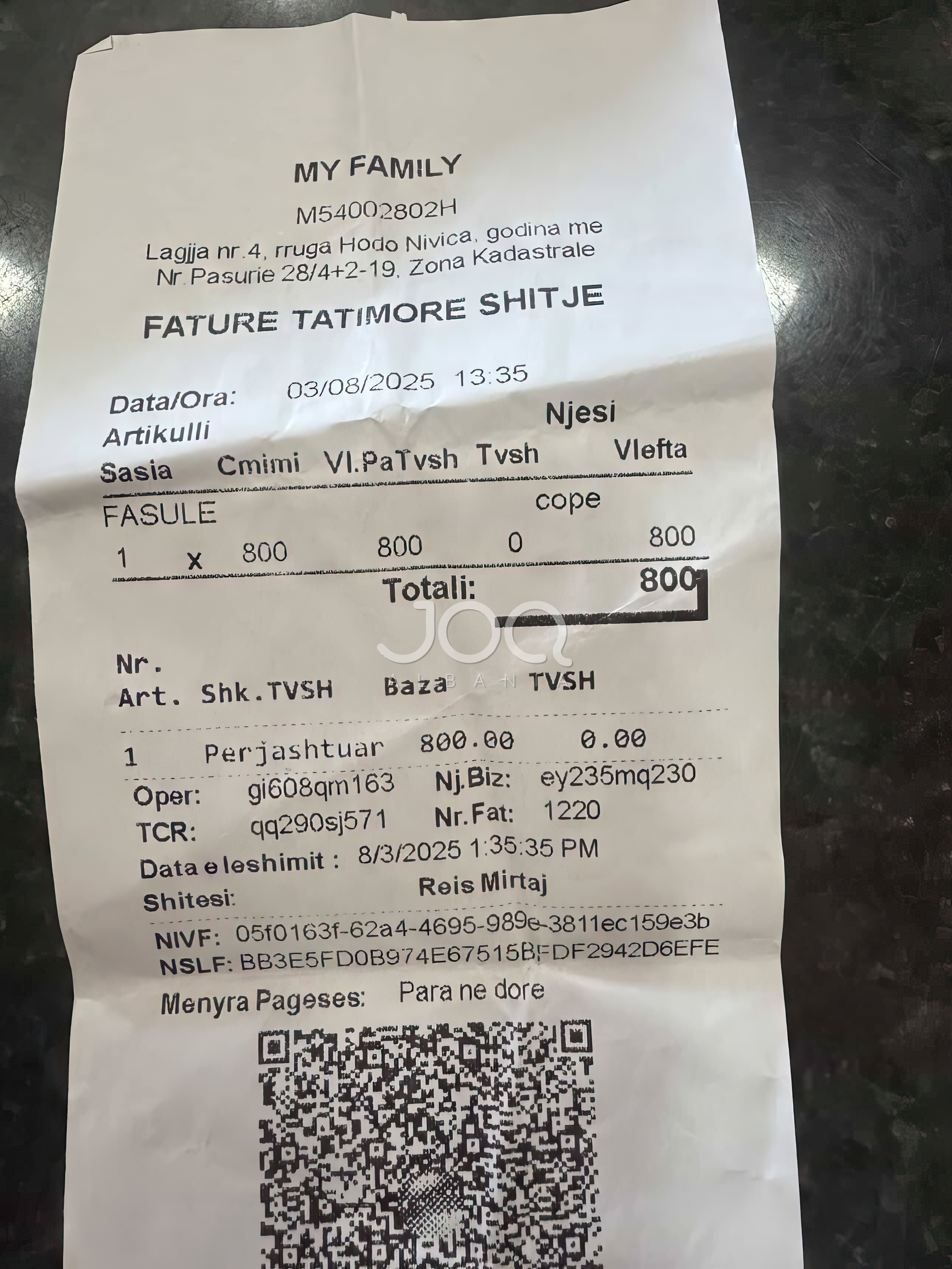 Një qytetar ka denoncuar pranë redaksisë së JOQ çmimin e çuditshëm të një pjate fasule në Sarandë. Sipas tij, ai porositi një pjatë groshë por mbeti pa fjalë kur pa se u faturua 800 lekë të reja.