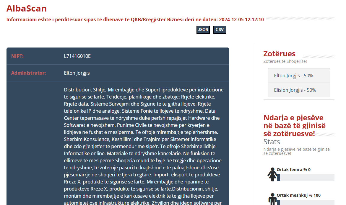 E krijuar në vitin 2017, “Albascan” raportonte një xhiro modeste prej vetëm 50 mijë eurosh në vit. Pas blerjes nga vëllezërit Elton dhe Elision Jorgjis në 2019, kompania njohu një ngjitje të rrufeshme: në vetëm katër vite, arriti të arkëtojë miliona euro nga Thesari i Shtetit, duke u shndërruar në një nga përfitueset më të mëdha të kontratave publike. Sot, “Albascan” qarkullon mesatarisht 1.8 milionë euro në muaj nga buxheti i shtetit.