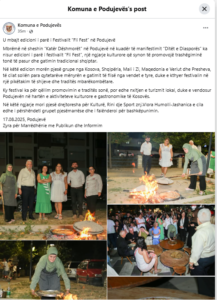Në kuadër të manifestimit “Ditët e Diasporës”, mbrëmë në sheshin “Katër Dëshmorët” në Podujevë është mbajtur edicioni i parë i festivalit “Fli Fest”, një ngjarje që synon të promovojë trashëgiminë kulturore dhe kulinarinë tradicionale shqiptare.