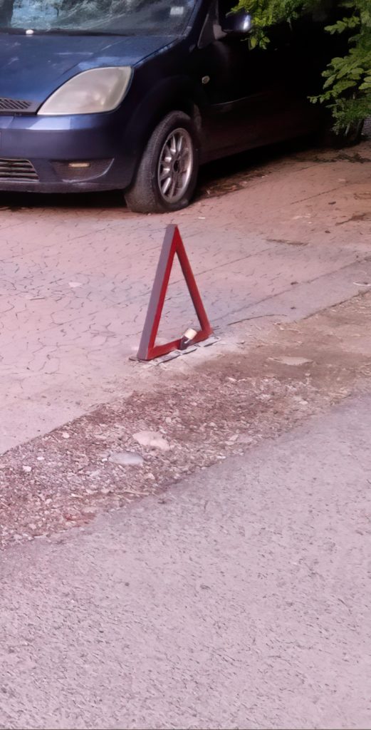"Përshëndetje JOQ! Jam një qytetare e zonës së Freskut dhe dua të denoncoj zaptimin e një hapësire publike, ku ne si banorë sajohemi për parkimin e makinave. Këto 2-3 javët e fundit janë zaptuar 3 hapësira parkimi me trekëndësha me çelës. Kemi 15 vite e më shumë që banojmë këtu, por kurrë nuk e kemi menduar të bëjmë zaptuesin. Zaptimi, si për habi, vjen nga dy persona: njëri punonjës policie dhe tjetri një gazetar i TV Klan. I bëjmë thirrje përmes jush, së pari Policisë Bashkiake, që të marrë masa të menjëhershme, sepse nuk do të jetë e largët dita kur mund të konflitkohet dikush për këtë gjë. E dyta, Policisë së Shtetit që të disiplinojë punonjësit e vet, të mos sillen si gangsterë në lagje, duke i thënë edhe administratorit: "Ç’ke ti, se merrem unë me bashkiakët." Gjithashtu, edhe një thirrje për TV Klan që të merren me punonjësin e tyre, që të mos bëhen lajm për të tjerët. Duke shpresuar në mirëkuptimin e zaptuesve, presim reagimin e tyre; në të kundërt do të jetë vonë për gomat apo xhamat e tyre. Kemi bërë gjithandej ankesa dhe nuk ka asnjë reagim konkret. Për sa kohë trekëndëshat gjenden aty akoma, i bie që nuk e ka marrë askush seriozisht. Ju falënderojmë për denoncimin. Faleminderit ju për bashkëpunimin", shkruhet në denoncim.