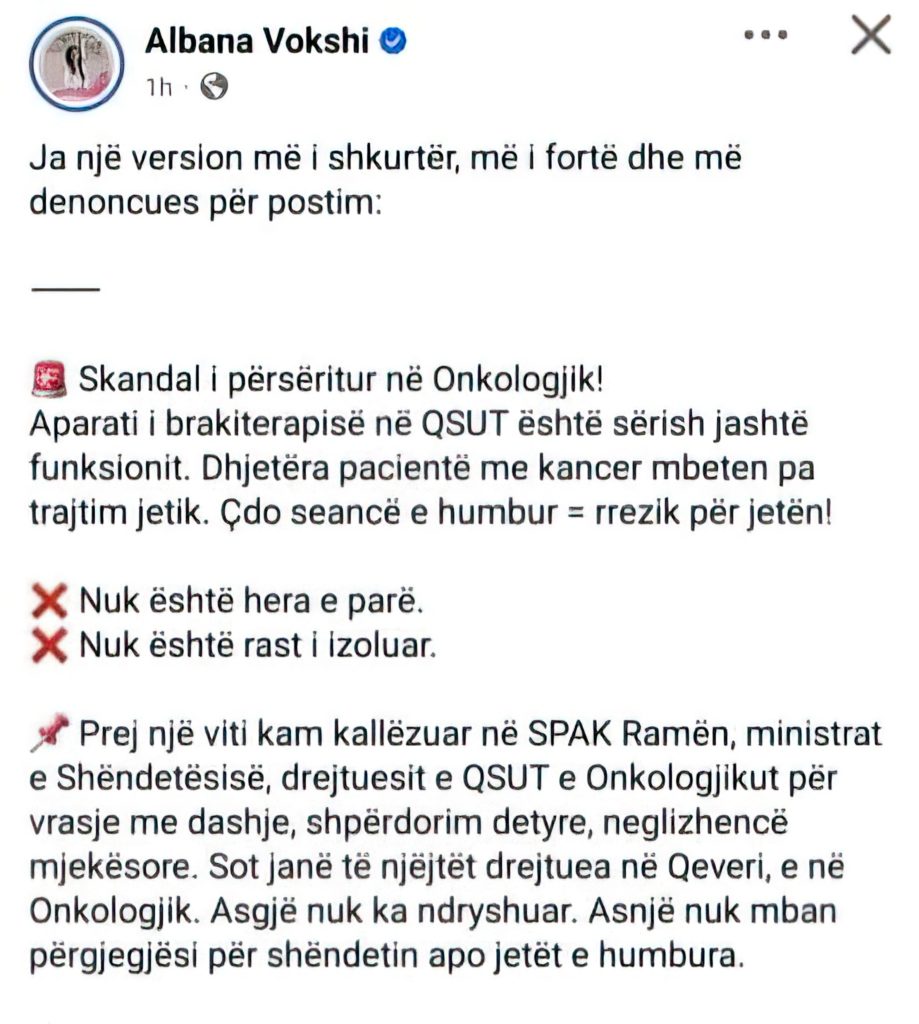 Pas humbjes së zgjedhjeve parlamentare të 11 Majit dhe humbjes së besimit të qytetarëve, Partia Demokratike si duket do të ulet në karriget e Kuvendit të Republikës së Shqipërisë me deputetë tashmë dhe ‘përtacë’. Një prej demokratëve, konkretisht Albana Vokshi ka publikuar një denoncim lidhur me Onkologjikun por që ka nxjerrë zbuluar autorin e denoncimit.
