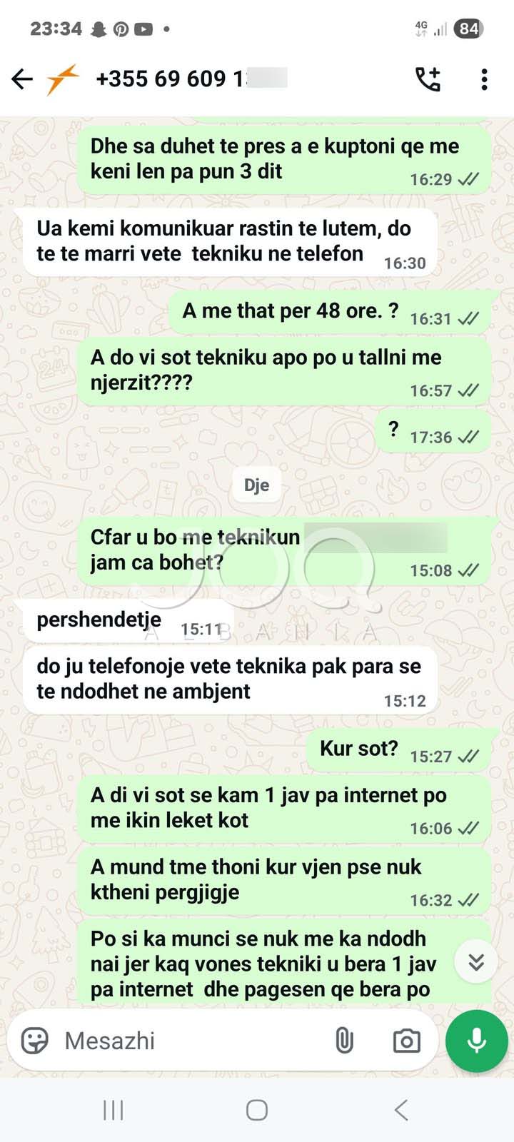 Ai thotë se prej më shumë se një jave është pa shërbim, pavarësisht se paguan rregullisht çdo muaj. Sipas tij, çdo ditë i premtohet se “tekniku do të vijë sot” ose “tekniku do të vijë nesër”, por deri tani askush nuk është paraqitur.