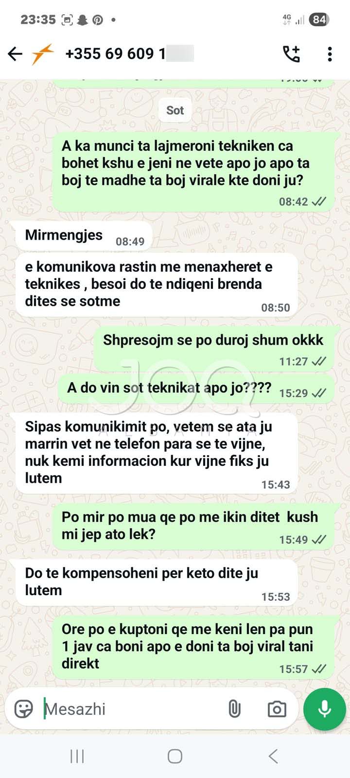 Ai i bën apel kompanisë që të marrë masa urgjente, ndërsa shton se nuk është i vetmi që po përballet me këtë problem.