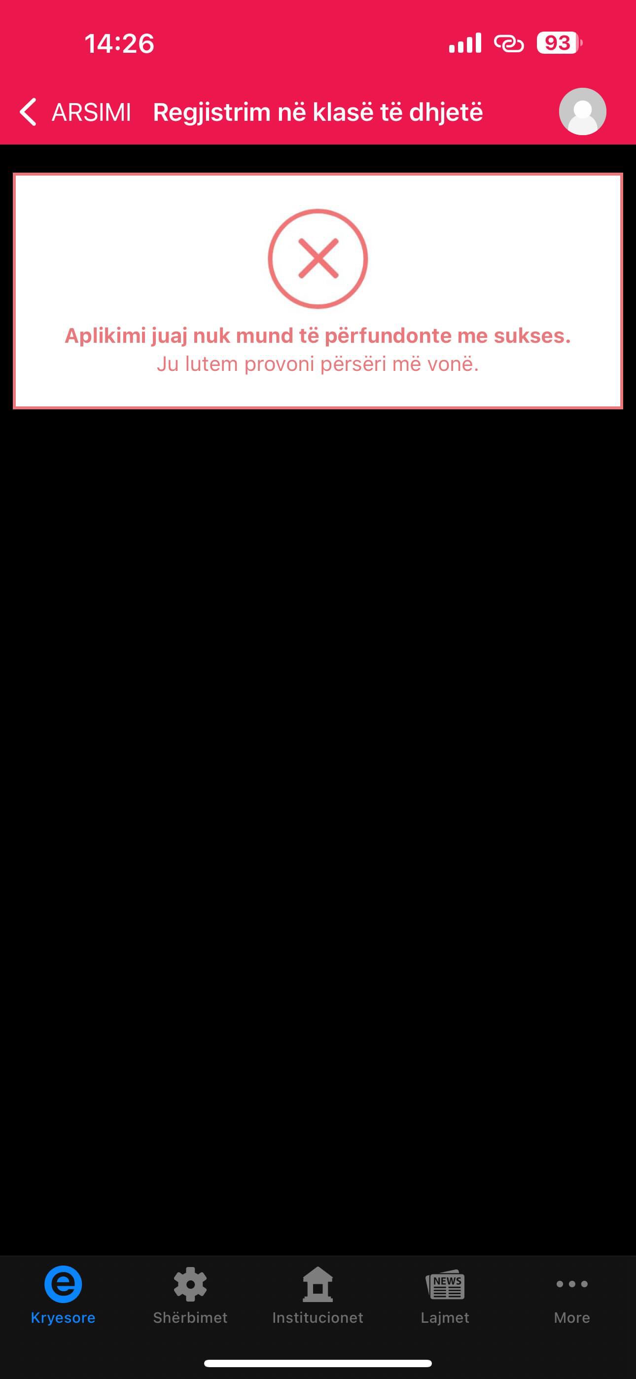 Pershendetje kam 1 jav qe provoj t aplikoj per n gjimnaz te E-Albania dhe thote aplikimi nuk mund te kryhet me sukse, provoni perseri
