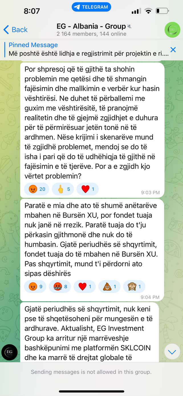 Një qytetar shkruan: “Kam humbur 3000 dollarë dhe po përdoret grupi ekzistues për të tërhequr njerëzit në platformën e re. Ju lutem, kini kujdes!”
