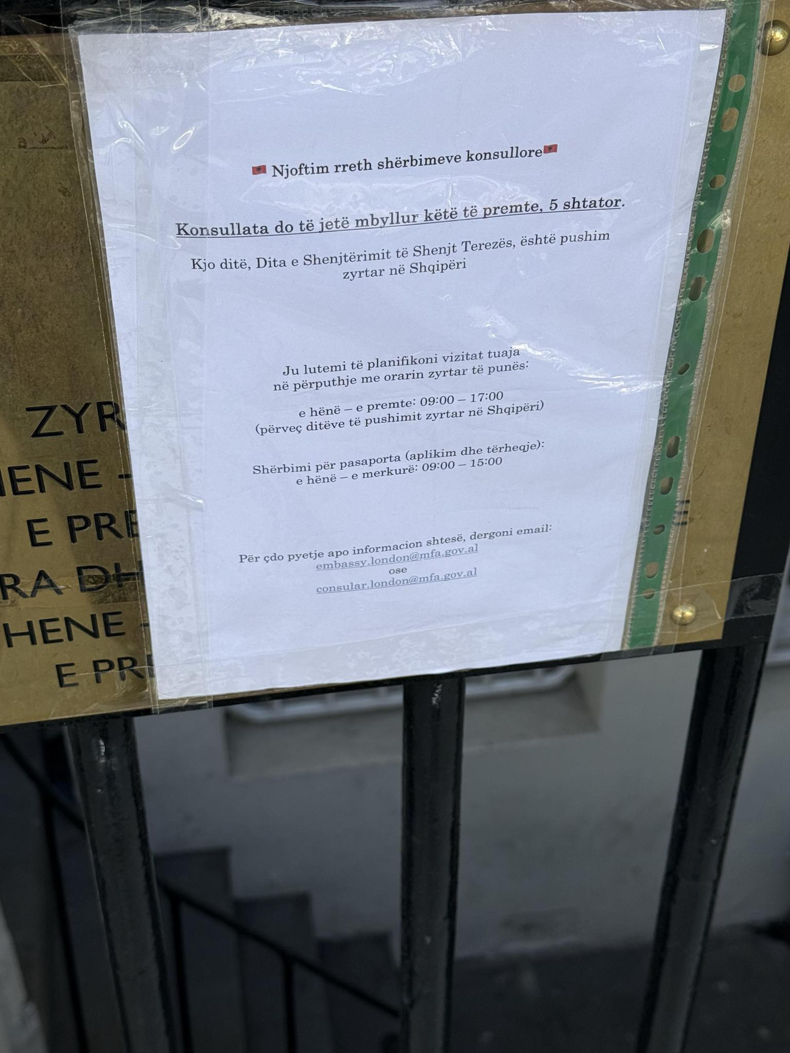 Një qytetar shqiptar ka denoncuar mbylljen e Ambasadës në Londër pa asnjë paralajmërim zyrtar në portalin online, pasi kishte udhëtuar katër orë për të përfunduar një shërbim konsullor.