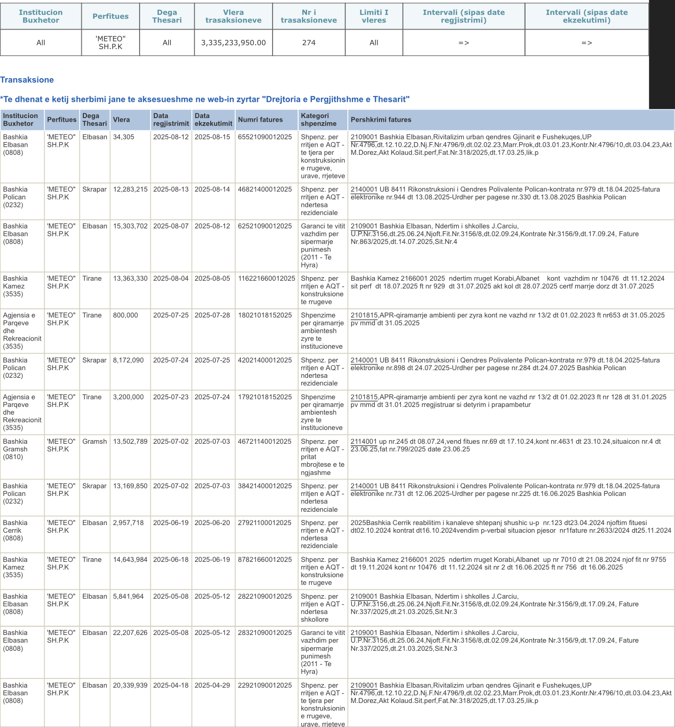Nga transaksionet e Thesarit, të dhënat tregojnë derdhje prej mbi 33 MILIARD LEKËSH për Myftarajn nga viti 2019 e deri më sot.