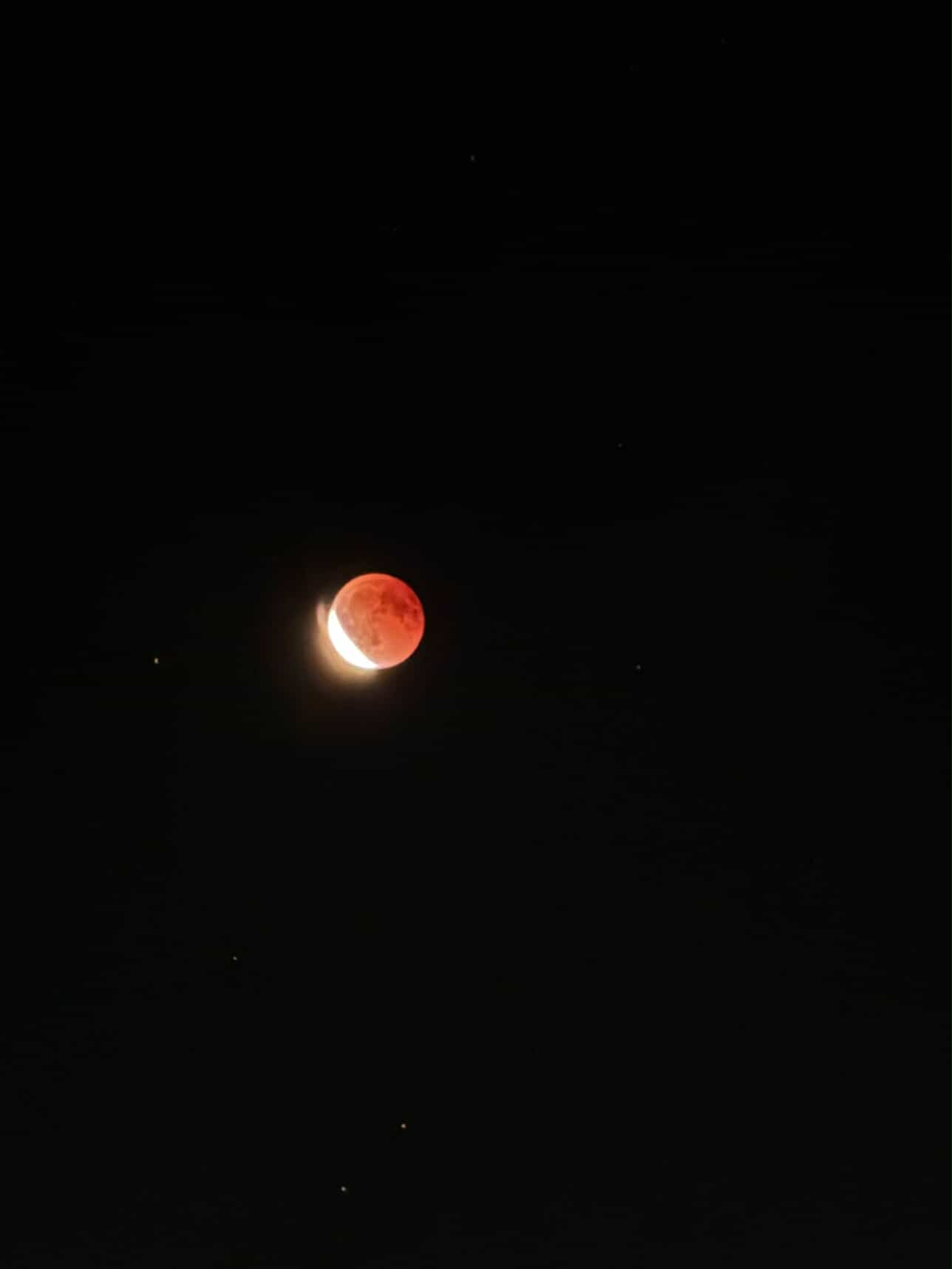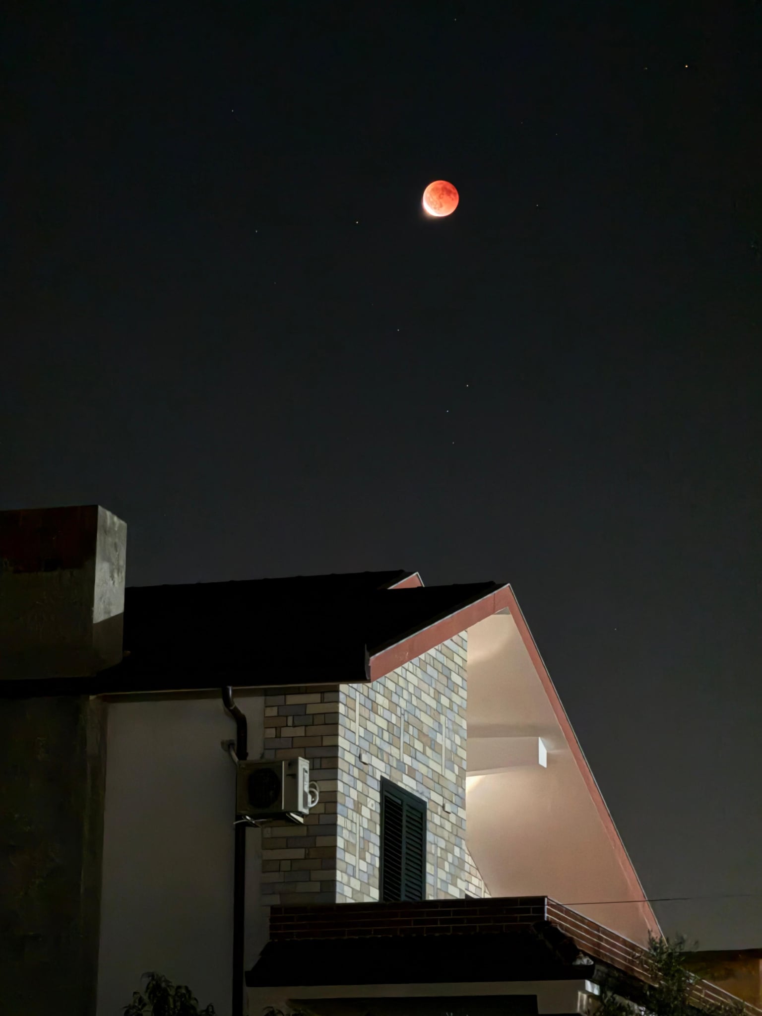 Ky fenomen hapësinor është i dukshëm në të gjithë Europën, përfshirë edhe vendin tonë. Hëna tashmë ka marrë një ngjyrë të kuqërremtë, efekt që ndodh kur ajo kalon përmes hijes së plotë të Tokës dhe ndriçohet nga drita e filtruar e atmosferës. Spektakli i natyrës bën që ajo të shfaqet si një “top i kuq” gjigant që ndriçon natën.
