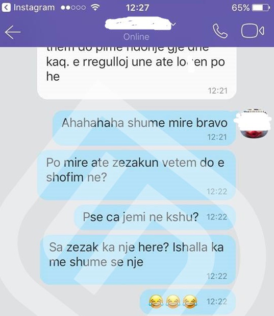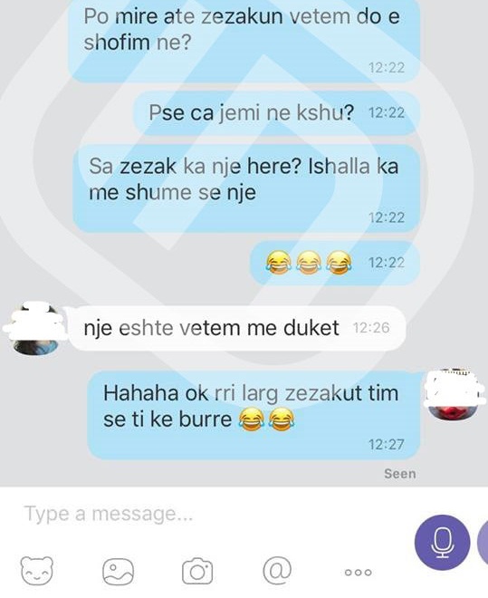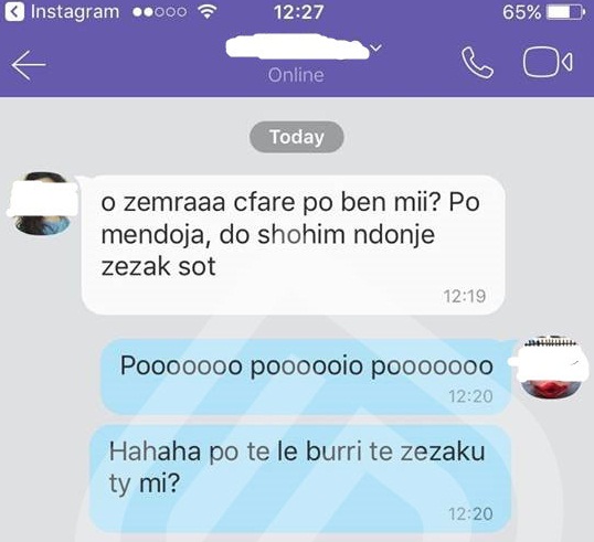 Ato kanë komunikuar mes tyre në Viber, ku njëra prej vajzave i kërkon tjetrës të marrë leje nga bashkëshorti për të shkuar në pub, ndërsa tjetra ia kthen se e ka rregulluar situatën për të parë zezakët.