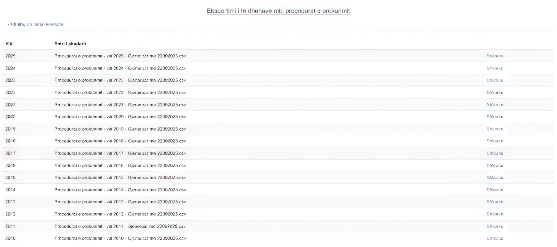 Dokumentet për çdo vit rezultojnë bosh: nuk ka të dhëna për tenderat, koncesionet apo prokurimet publike. Me një klikim janë zhdukur 11 vite historik i plotë, duke pamundësuar çdo transparencë për sektorin më të akuzuar në vend për abuzime dhe korrupsion.