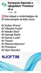 Në bashkëngjitje, komuna ka publikuar edhe foto që dëshmojnë se kompania ka njoftuar për komunat e tjera, por jo për Drenasin.