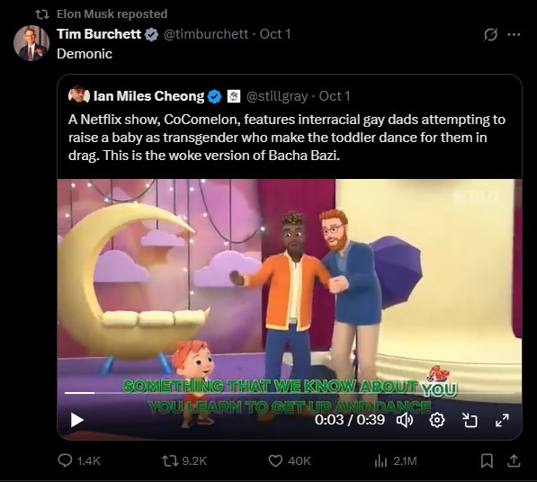Elon Musk ka ndezur debate të reja në rrjetet sociale pasi iu bashkua thirrjeve për anulimin e Netflix, duke kritikuar platformën për përfshirjen e përmbajtjeve me karaktere transgjinorë në një serial të dedikuar për fëmijët.
