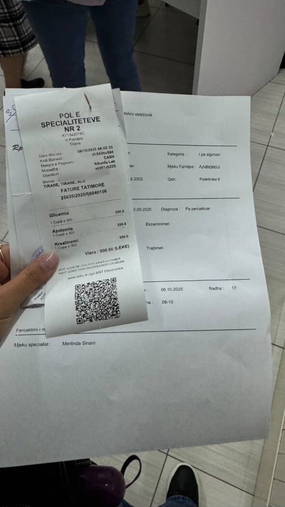 Një qytetare ka denoncuar për JOQ një situatë absurde që i ka ndodhur në qendrën shëndetësore nr.2 në Tiranë. Ajo tregon se kishte shkuar për të kryer një analizë gjaku me rekomandim nga mjeku i lagjes, por u përball me refuzim, pasi sistemi i qendrës e nxirrte si të pasiguruar, pavarësisht se prej tre vitesh është në marrëdhënie pune pa ndërprerje. Sipas saj, punonjëset i kërkuan të paguante 1000 lekë për analizën, edhe pse u tregoi se sigurimet i paguan rregullisht çdo muaj.