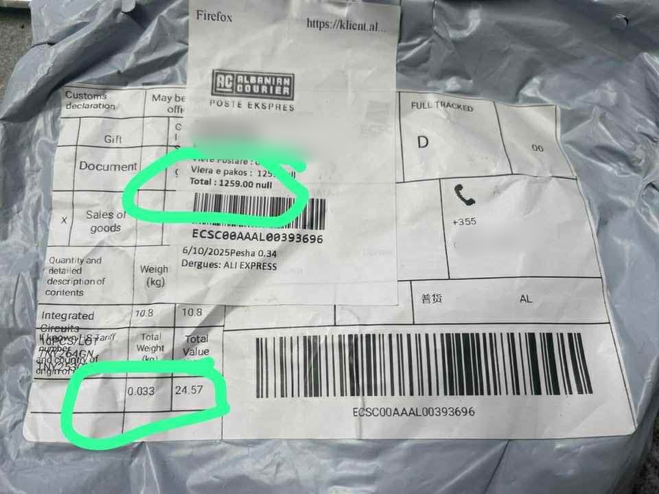Sipas denoncimit, së fundmi disa pako të vogla të porositura nga platforma si AliExpress, me vlera individuale rreth 5–12 dollarë, po futen në një paketim të vetëm kur arrijnë brenda territorit të Shqipërisë. Kur vlera totale e paketës të bashkuara kalon pragun prej 25 dollarësh, dërgesa klasifikohet për doganë dhe pagesa llogaritet më e madhe se e vetë porosisë në realitet.