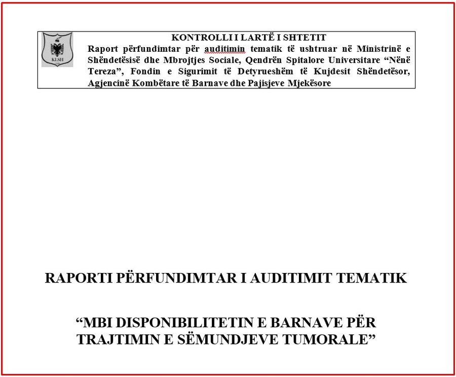 Një raport tronditës i Kontrollit të Lartë të Shtetit ka zbuluar boshllëqe alarmante në sistemin e kontrollit të barnave në Shqipëri. Prej vitesh, Agjencia Kombëtare e Barnave dhe Pajisjeve Mjekësore nuk ka kryer analizat e detyrueshme mbi përbërjen dhe cilësinë e medikamenteve, veçanërisht atyre që përdoren në trajtimin e sëmundjeve tumorale.