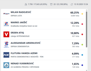 Erden Atiq i VV’së në Mitrovicë të Veriut: 837 vota ose 10.80 për qind;