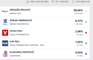 Ilir Peci i PDK’së në Zveçan: 73 vota ose 1.85 për qind.