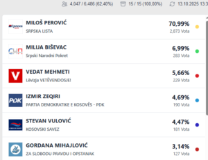 Izmir Zeqiri i PDK’së në Zubin Potok: 190 vota ose 4.69 për qind;
