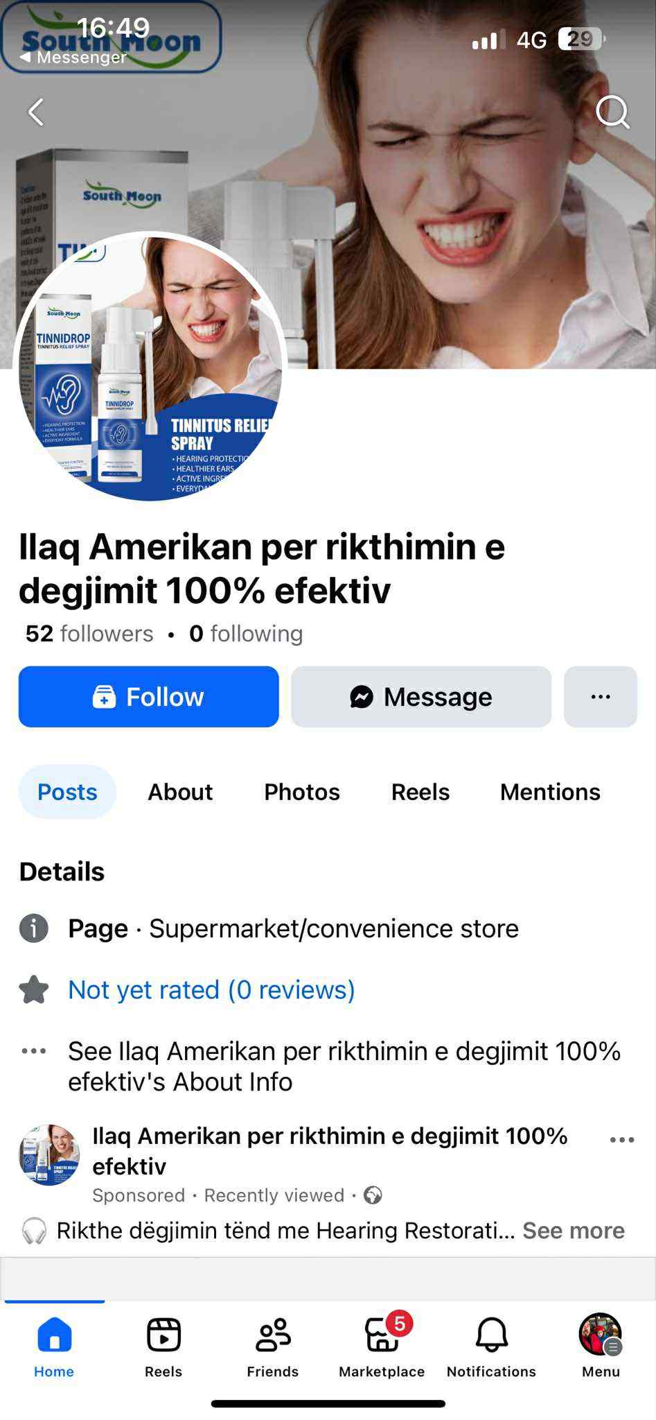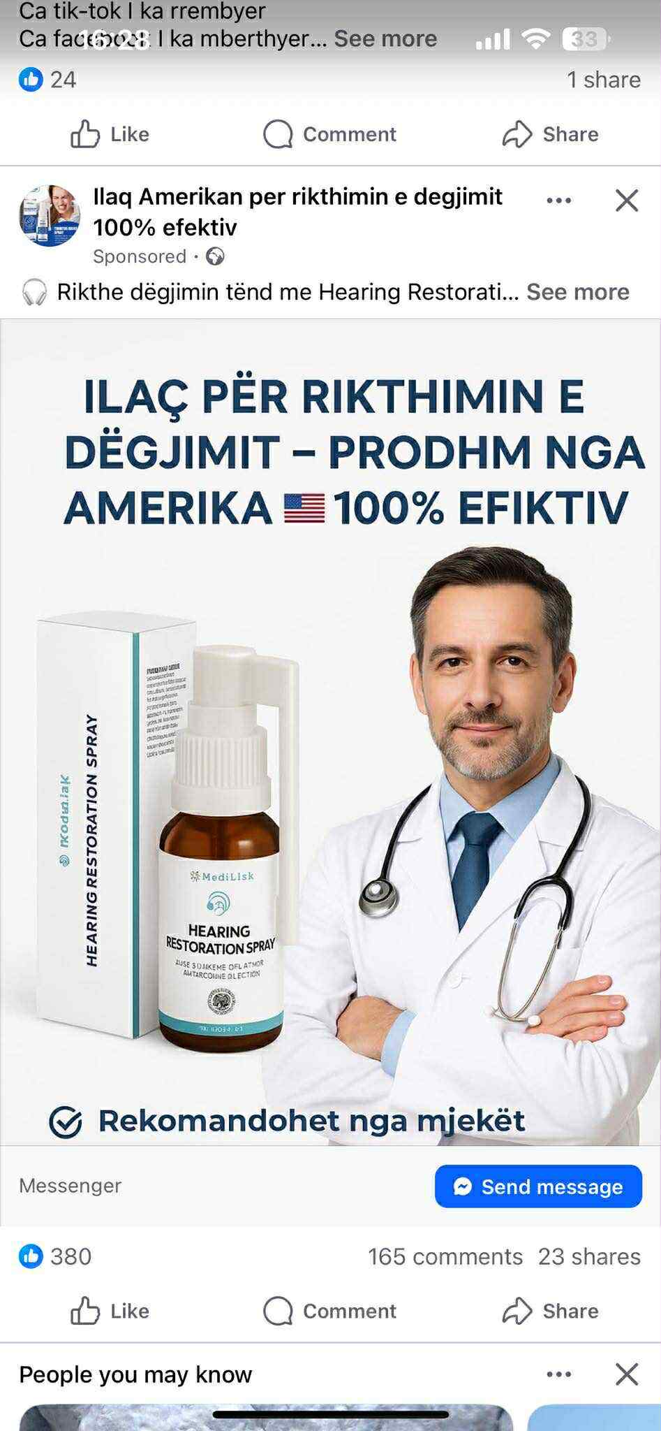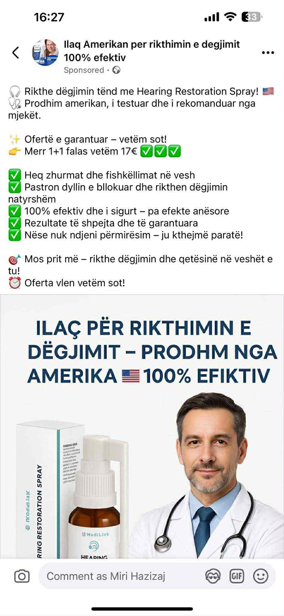 "Pershendetje doja te beja nje denoncim per nje faqe online. Ka porosit babai nje ilac per veshet dhe kane sjell uje te oksigjenuar e nuk kthejn pergjigje jane mashtruesa me pak fjale 19 euro. Po mire qe e pashe se do e perdorte per vesh e do na hapte avaze. 2 euro ishte dergesa. Po nga e shkruajtura ashtu duket ilaq amerikan Posta elite ishte derguesi po si bera nje foto"