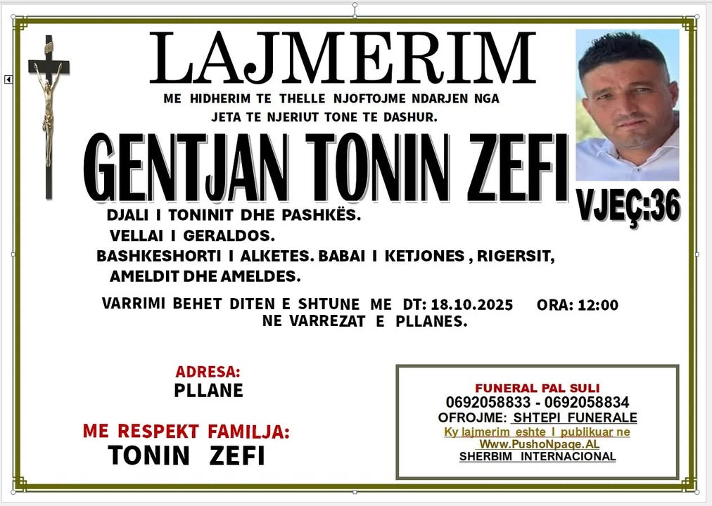 Por të afërmit raportojnë për JOQ se i ndjeri është Gentjan Zefi i cili ka lënë pas 4 fëmijë: