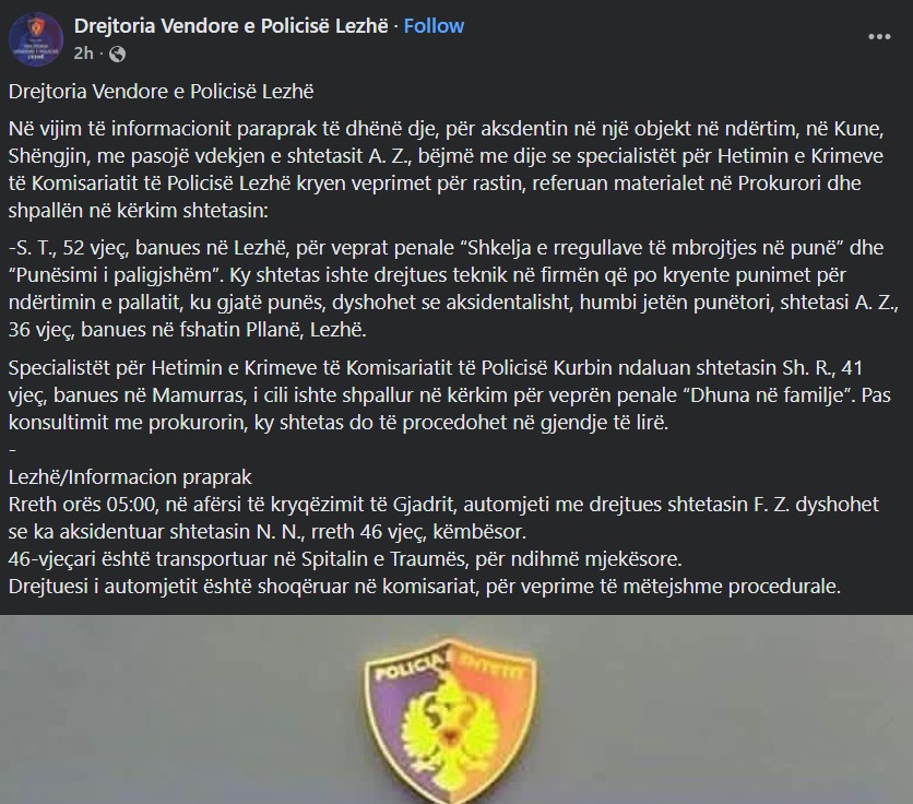 Kjo humbje e jetës është një dëshmi e qartë e gjendjes alarmante të sigurisë në punë në Shqipëri, ku në shumë raste punëtorët operojnë në kushte minimale mbrojtjeje. Sektori i ndërtimit, në veçanti, shënon një numër të lartë incidentesh fatale për shkak të mungesës së kontrollit, moszbatimit të standardeve ligjore dhe mungesës së përgjegjësisë nga subjektet ndërtuese.