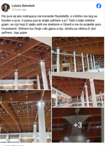 “A ju kujtohet çka kom pas shkru për kulmin e Prishtina Mall para 3 vjetve? Veç pritet kur ndodhë fatkeqësia, jo a ka me ndodhë. Fatmirësisht pa viktima kësaj radhe.”