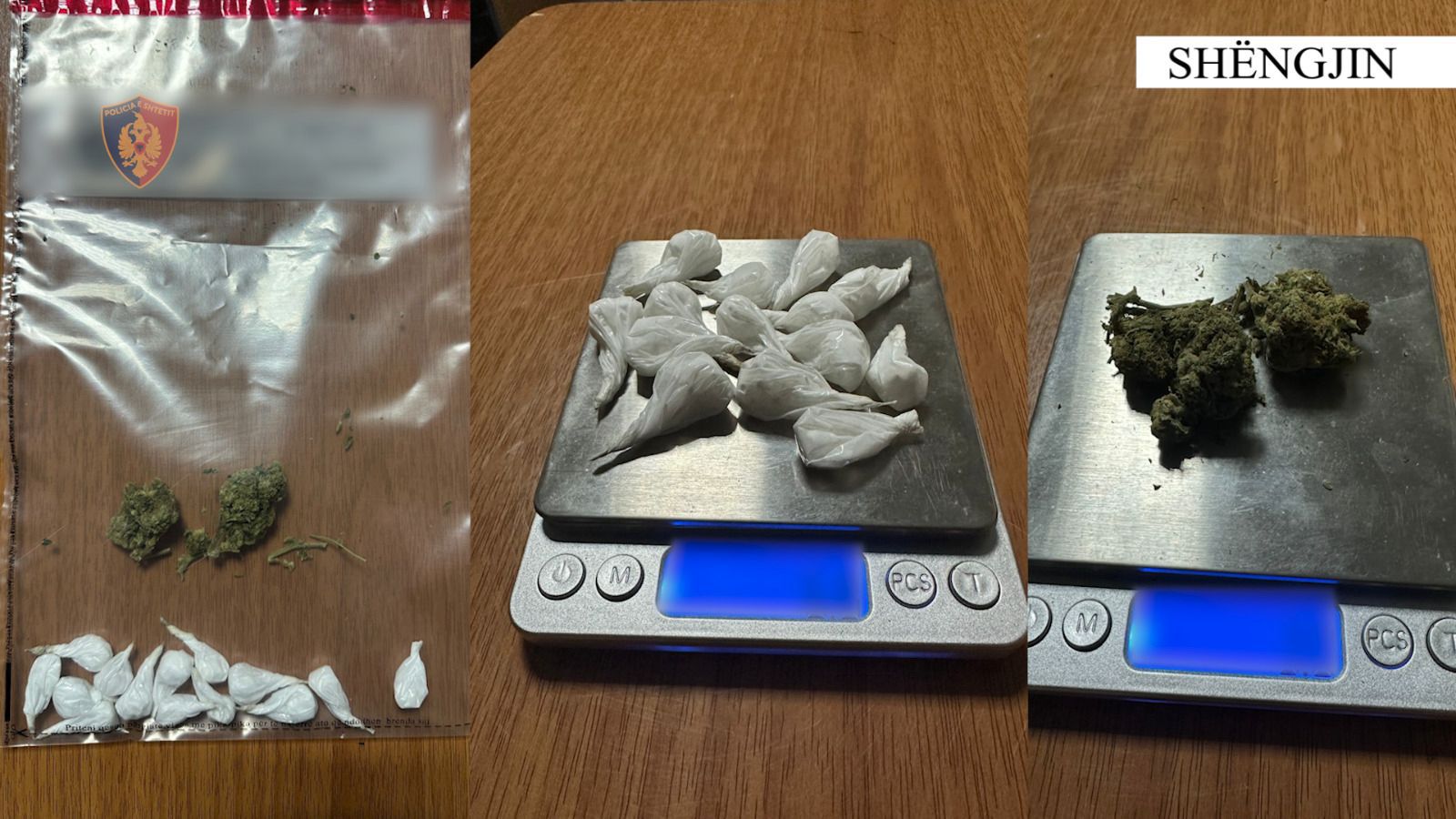 Gjatë kontrollit të mjetit, forcat e rendit gjetën dhe sekuestruan lëndë të dyshuar narkotike të llojit kokainë dhe kanabis, si dhe një thikë. Gjithashtu gjatë kontrollit të banesës së Pietro Gegës, 26 vjeç, person me precedent penal në fushën e narkotikëve, policia ka gjetur dhe sekuestruar 60 fishekë armë zjarri të llojit pistoletë.