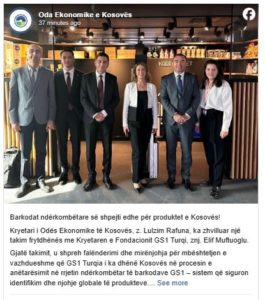 Barkodat ndërkombëtare do të jenë së shpejti realitet edhe për produktet e Kosovës. kryetari i Odës Ekonomike të Kosovës (OEK), Lulzim Rafuna, ka zhvilluar një takim frytdhënës me kryetaren e Fondacionit GS1 Turqi, Elif Muftuoglu, ku është diskutuar për hapat përfundimtarë drejt anëtarësimit të Kosovës në rrjetin ndërkombëtar të barkodave GS1.